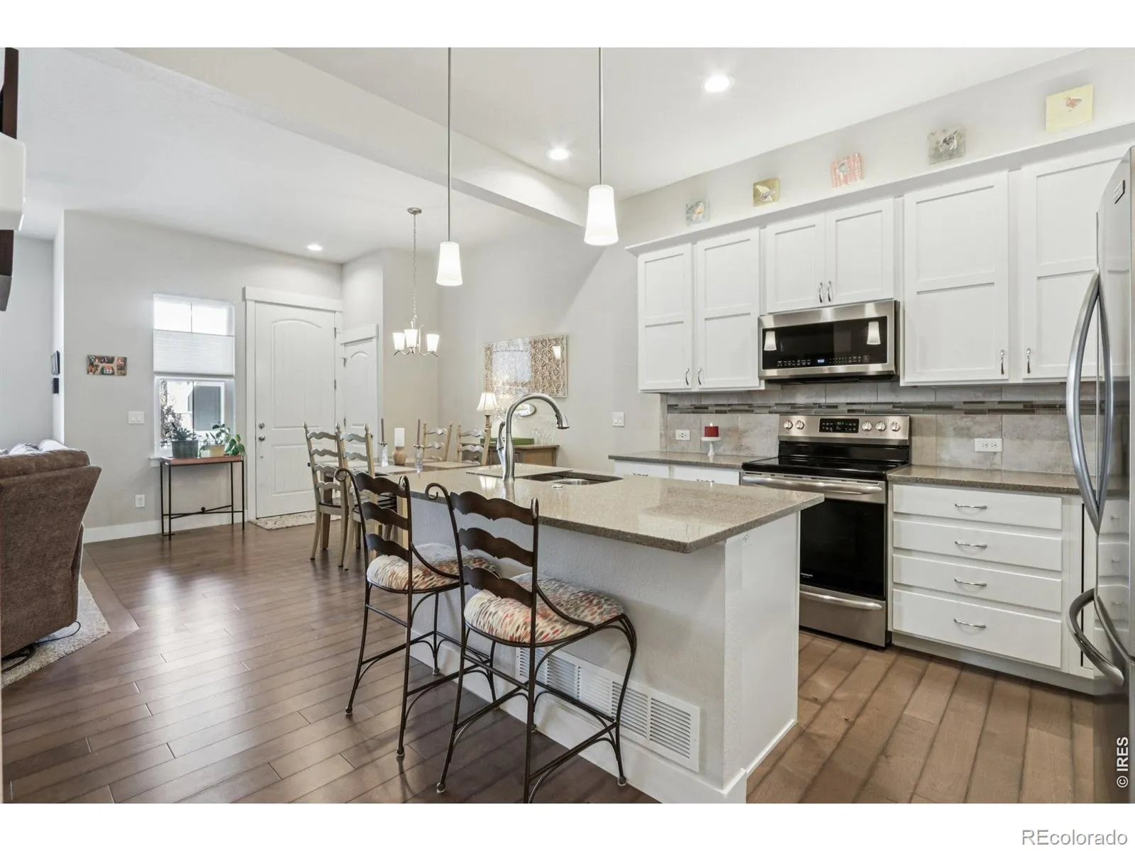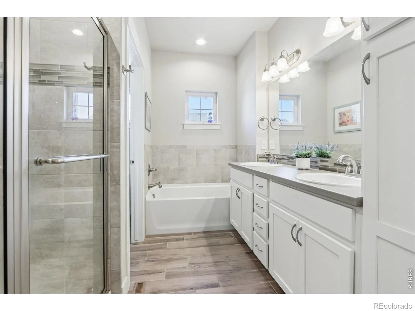 Big & Beautiful Dual Primary Suite Townhome in Amenity Filled Lakes of Centerra! This Quality 2 Bed/2.5 Bath Townhome Features a Bright & Open Floorplan with High End Finishes Throughout. Wood Floors Compliment a Gorgeous Eat-In Kitchen with Tall White Cabinetry, Quartz Countertops, & SS Appliances. Cozy up next to the Living Room Fireplace. Upstairs You’ll Find Two Primary Suites. The Larger with a Five-Piece Bath and Bigger Walk-In Closet. Full Unfinished Basement with 10′ Ceilings & Rough-In for Future Bath Allows you to Expand. Fenced in Courtyard for pets. Views of Boyd Lake & Longs Peak. Oversized Two-Car Garage. Walking Distance to High Plains Elementary/Middle. Ask About our Preferred Lender Incentives!