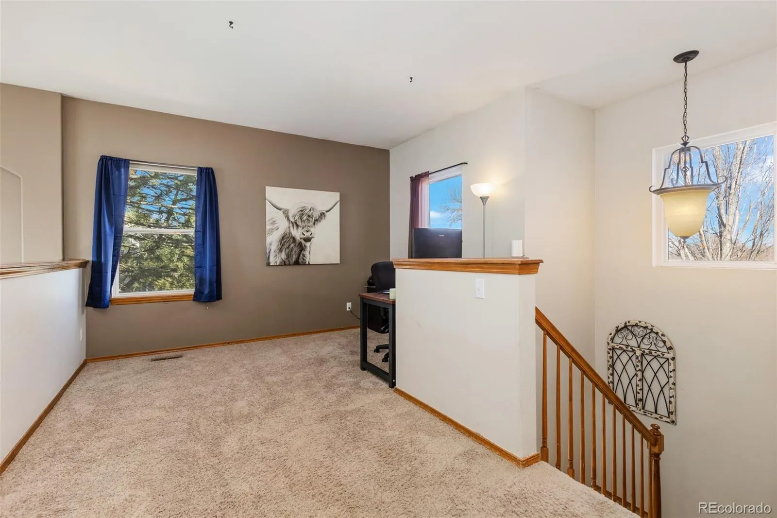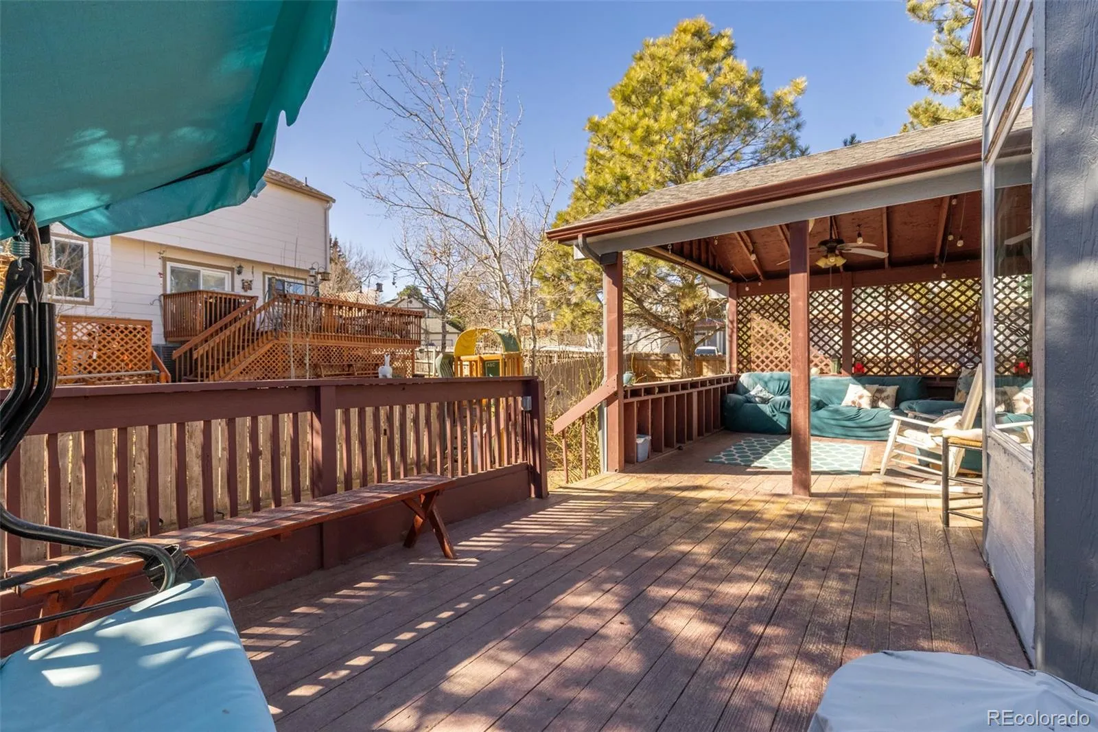 Terrific two-story 3-bedroom, 3-bathroom + loft home sits on a large corner lot in the desirable Clarke Farms community of Parker! The gorgeous, mature tree-filled corner lot offers amazing curb appeal and adds wonderful privacy. The open kitchen with stainless appliances flows comfortably into the main living and entertaining area, creating an inviting space for gatherings or everyday living. Step outside to the covered back deck, a perfect place to relax or entertain while enjoying the fully fenced backyard. Upstairs you’ll find a spacious primary bedroom with a 5-piece ensuite bath and walk-in closet. Two additional bedrooms and a full bathroom complete with beautiful natural light from the skylight provide a comfortable space for family or guests. The large loft offers flexible space for a home office, workout room, playroom, or whatever fits your lifestyle. The partial “rough-finish” basement is a great bonus area and includes a large storage closet. Enjoy peace of mind with a new roof, new exterior paint, and new gutters. The oversized 2-car garage includes a bonus workshop area, ideal for hobbies, projects, or extra storage. Living in Clarke Farms means you’re close to Cherry Creek Regional Trail with miles of hiking and biking trails, a skate park, a community pool, tennis courts, and more, plus convenient access to shopping, restaurants, parks, Pace Center and Downtown Parker. A wonderful blend of comfort, updates, curb appeal, and location…Make this excellent Parker yours!