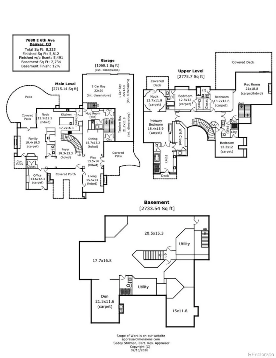 A statement in scale and design, this custom-built estate rises with architectural presence on a prominent corner lot in one of Lowry’s most coveted enclaves. Set along the distinguished stretch of 6th Avenue Parkway, where true estates rarely trade – the home enjoys a scarce position backing to open space, delivering unobstructed sunset and mountain views few in the neighborhood can claim. Built with quality and craftsmanship seldom found today, this residence offers long-term versatility. A covered front porch welcomes you into a grand foyer with sweeping staircase, soaring ceilings, and dramatic two-story windows. Arched French-pane windows flood interior with sunlight, while custom millwork creates a timeless aesthetic. The East wing of the main level features a sunlit east-facing office with fireplace, luxurious powder bath, and oversized receiving area with full wet bar with refrigeration and outdoor patio access. The West wing of the main level is anchored by a formal living room, flexible piano or sitting room, and formal dining space supported by a well-appointed butler’s pantry. The chef’s kitchen offers an eat-in island, integrated appliances, walk-in pantry, warming drawer, and six-burner range with custom hood and pot filler. Off the four-car garage, a mudroom with built-ins connects to a well-appointed laundry room with utility sink. Upstairs, four ensuite bedrooms with walk-in closets plus a large recreation room with fireplace and wraparound deck support multigenerational living. The primary suite features a fireplace, sitting area, wet bar, covered balcony, and spa bath with jetted tub, walk-in shower, dual vanities, and custom closet with laundry. The lower level is prepped for future finish with office, bath/bar plumbing, and bedroom framing. Fully fenced yard and integrated security complete this rare offering backing to open space just moments from Denver’s core.