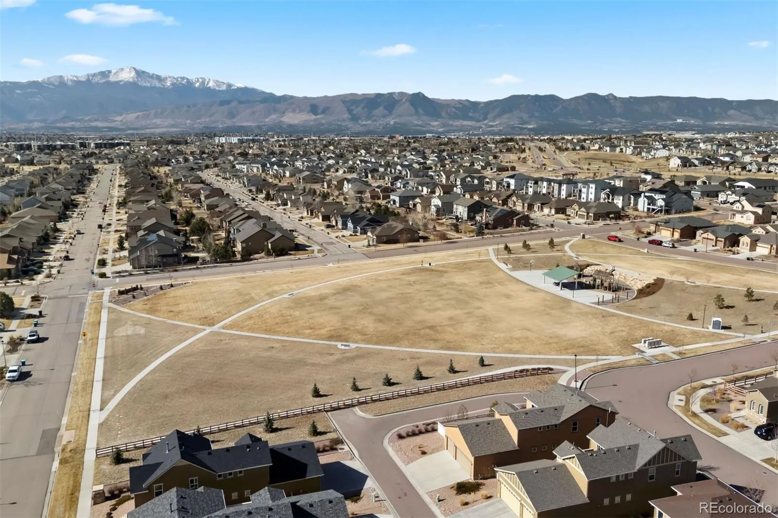 Welcome to the ultimate combination of convenience, serenity, function, and style! * This formal model home is one of the most PHENOMENAL locations in all of Wolf Ranch * Tucked away on a tranquil no-outlet road – just a few steps away from beautiful Valemount Park – literally right across the street! * Spectacular Pikes Peak views * Over-sized three-car garage * Enjoy the Pikes Peak views year-round with a covered back patio (complete with bistro lights) connected into the fully fenced back yard * Light and bright motif with lots of natural light and open modern floor plan * Upstairs is the five-piece primary bedroom suite with a walk-in closet * Primary bedroom connects to a spacious balcony with sweeping mountain views – then two secondary bedrooms and a full bathroom – plus a bonus flex space with lots of light and mountain views * Downstairs is another bedroom and full bathroom – plus a large recreation room and also a spacious storage room * Added convenience and peace of mind with HOA that covers snow removal and recycling * Upgrades galore given it was a model home – flooring, lighting, appliances, sound system speakers, etc. * Enjoy the plethora of amenities that Wolf Ranch has to offer – including the Wolf Ranch Recreation Center with a Junior Olympic-sized pool, splash park, clubhouse for private parties/events – in addition to the 7+ miles (and growing) of easily walkable trails, dog park, ample green/open space, festivals and summer concert series in the park, outdoor fitness classes, and more! *