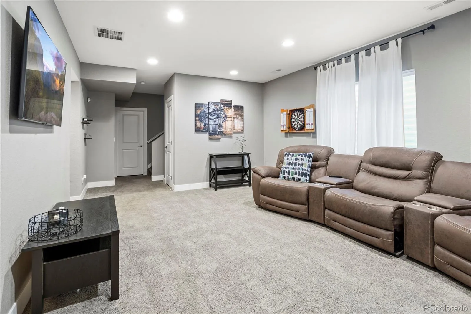 Upstairs features a loft flex space perfect for a home office or playroom along with the main suite two additional bedrooms and laundry room. The finished basement features a great room/media room, a private bedroom, a full bathroom and some additional storage spaces. The garage is an extended 2 car, perfect for trucks and larger vehicles.
