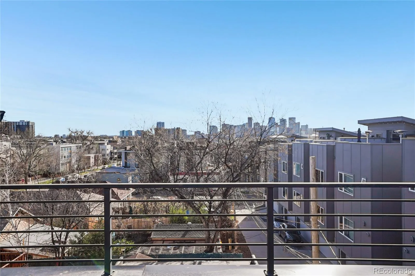 Showcasing breathtaking rooftop views of downtown, this stunning end-unit townhome in Jefferson Park offers a sleek, open-concept design and the perfect urban retreat. The entry level provides direct access to the attached two-car garage and leads up to the second-floor main living area, which is bathed in abundant natural light through large windows. This level features modern finishes and a seamless flow between the living room, dining room, and a gourmet kitchen equipped with quartz countertops and stainless steel appliances, plus a convenient powder room. The third floor houses the private primary suite, complete with a walk-in closet and a private en-suite bathroom. A second bedroom, full hallway bathroom, and a laundry closet are also located on this level. High-end touches like custom closets and window shades are found throughout the home. One of the most spectacular features is the private rooftop deck, which offers stunning year-round views of both the city skyline and the mountains. With a low-maintenance exterior, this home is designed for effortless urban living. The location provides exceptional walkability to local coffee shops, restaurants, and parks, while offering quick access to downtown, LoHi, Empower Field, and I-25!