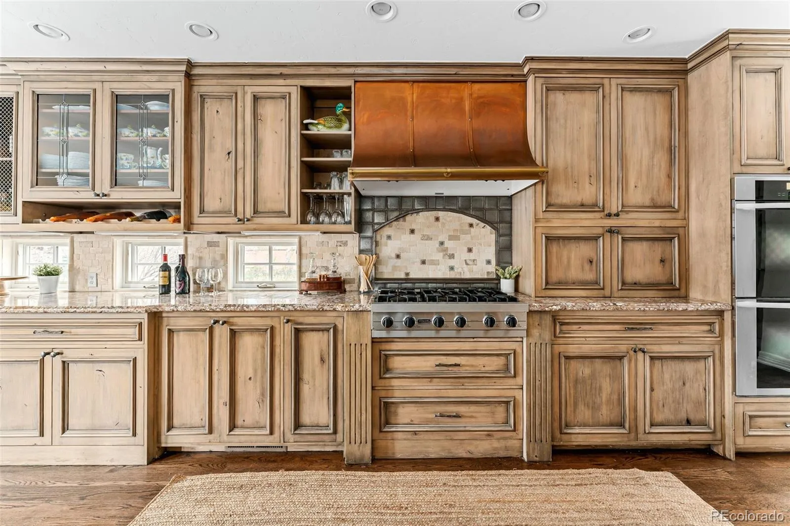 The main level offers formal living and dining rooms, a spacious sitting area, and updated kitchen (Sub Zero, Miele, Viking, and Asko appliances and range with a copper hood). French doors lead to an expansive deck for outdoor dining and a hard-scaped yard shaded by majestic evergreens.