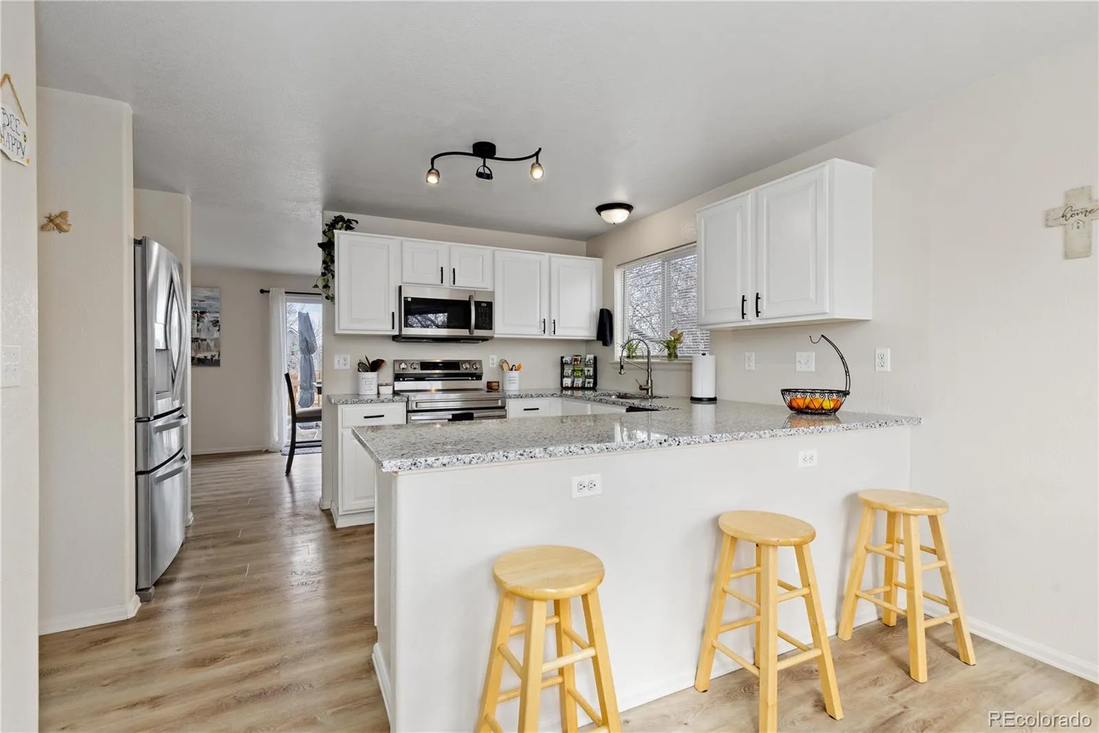 Tucked away on a quiet cul-de-sac in a wonderful Littleton neighborhood, this home has been a place of warmth, connection, and everyday joy. The bright, inviting spaces, friendly community, highly regarded JeffCo schools, and easy access to shopping, commuting routes, and the mountains for endless outdoor adventures. Inside, the open and airy layout feels crisp, clean, and filled with natural light. Large, sunny windows frame beautiful mountain views from many rooms, creating a serene backdrop throughout the day. The main level features new LVP flooring and a stunning, brand-new remodeled kitchen complete with granite countertops, stainless steel appliances, ample white cabinetry, and a charming eat-in nook with a bay window. The light-filled two-story living room with a bay window flows seamlessly into the dining area, offering the perfect setting for entertaining. A sliding glass door off the dining room opens to a spacious backyard deck, ideal for spring and summer gatherings. Just a few steps down, the cozy lower-level family room with fireplace provides the perfect place to relax. The private primary suite enjoys its own level, offering a peaceful retreat. The newly updated primary bath features a chic standalone soaking tub and a beautiful walk-in shower with a pebble rock accent wall. Upstairs, a charming reading nook sits alongside two additional bedrooms that share an updated full bath. The basement level includes another bedroom with a walk-in closet and attached bath—also ideal as a teen retreat or additional family room. Outside, the large backyard showcases a spacious newer deck and recently refreshed landscaping, creating a wonderful setting for outdoor living. Additional updates include a newer HVAC system with central A/C and heating, updated LVP flooring and carpet (2017), and a newer water heater. Move-in ready and beautifully maintained, this home offers comfort, style, and an unbeatable Littleton location.