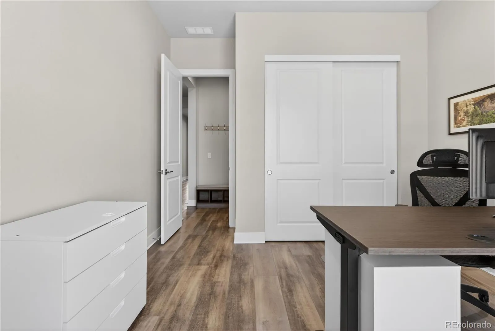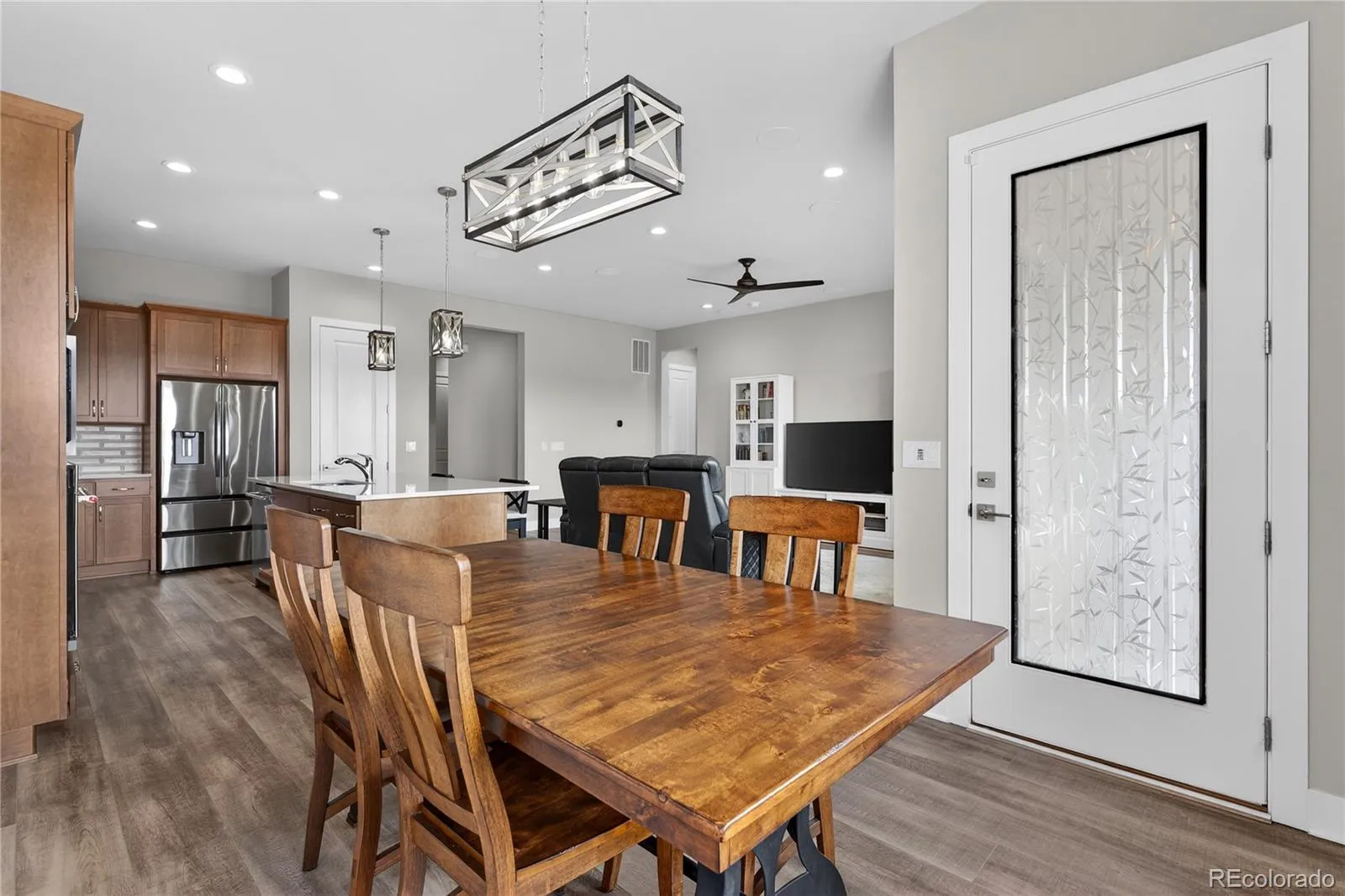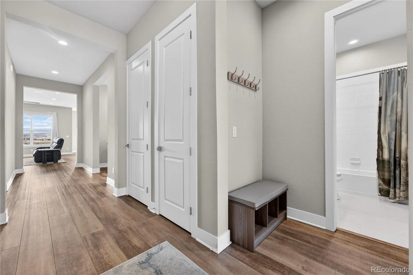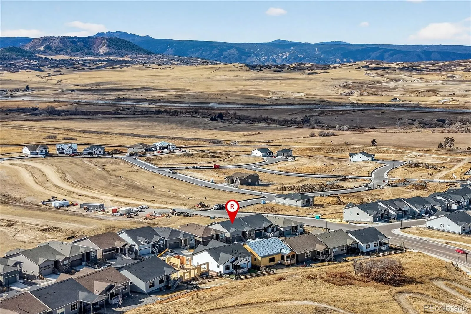 Set on a premium lot backing to open space, this brand-new ranch home offers breathtaking scenery in Castle Rock’s premier 55+ active-adult resort-style community. From the moment you arrive, you’ll notice the thoughtful design and high-end finishes that define this exceptional home. Step inside to a light-filled interior where 10-foot ceilings, 8-foot doorways, and expansive windows create an airy, elevated feel, while stunning mountain views greet you upon entry and set the tone for a home designed to celebrate Colorado’s natural beauty. The open-concept layout features premium luxury vinyl plank flooring, built-in speakers with surround sound, and a seamless flow between spaces. The heart of the home is the sleek, modern kitchen, complete with stainless steel appliances, a gas cooktop with range hood, quartz countertops complemented by a cohesive backsplash, warm cabinetry with crown molding, and a spacious island. The living room invites you to relax while taking in the open space and mountain views, and the adjacent formal dining area provides an elegant setting for gatherings and special occasions. Tucked away for privacy, the primary suite is a peaceful retreat with serene views, dual walk-in closets, and a luxurious ensuite bath featuring dual sinks and a frameless glass shower. An additional bedroom and full bathroom near the front of the home offer comfort for guests, while a versatile bonus room provides flexible space for a home office, additional dining, or a cozy sitting room. Completing the home is a convenient mudroom with built-ins just off the attached two-car garage. Experience the vibrant lifestyle of Montaine, where life is meant to be lived with miles of trails, rolling terrain, star-filled skies, and resort-style amenities designed for connection, wellness, and recreation.