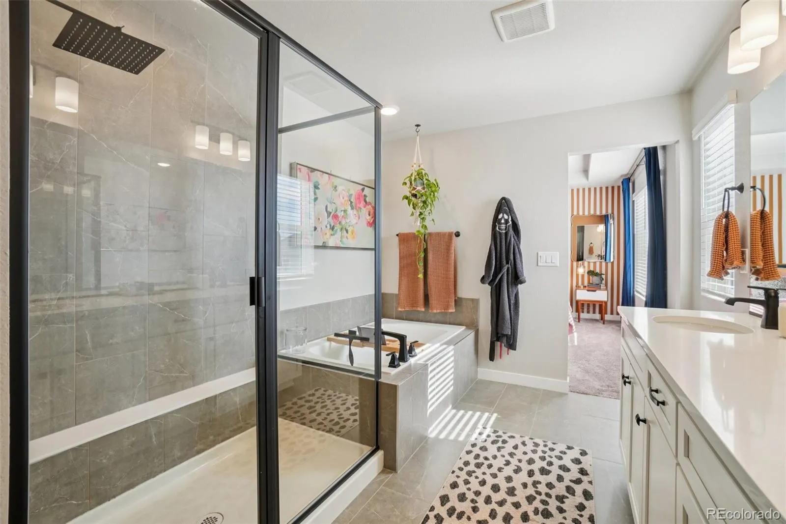 Upstairs, all four bedrooms are thoughtfully situated together. The spacious primary suite offers a luxurious, spa like 5 piece ensuite with a soaking tub, walk in shower, dual vanities, a large walk in closet, and an additional linen closet. Three more sizable secondary bedrooms, a full guest bath with dual sinks, and an upstairs laundry room complete the upper level—an uncommon and highly desirable layout.
