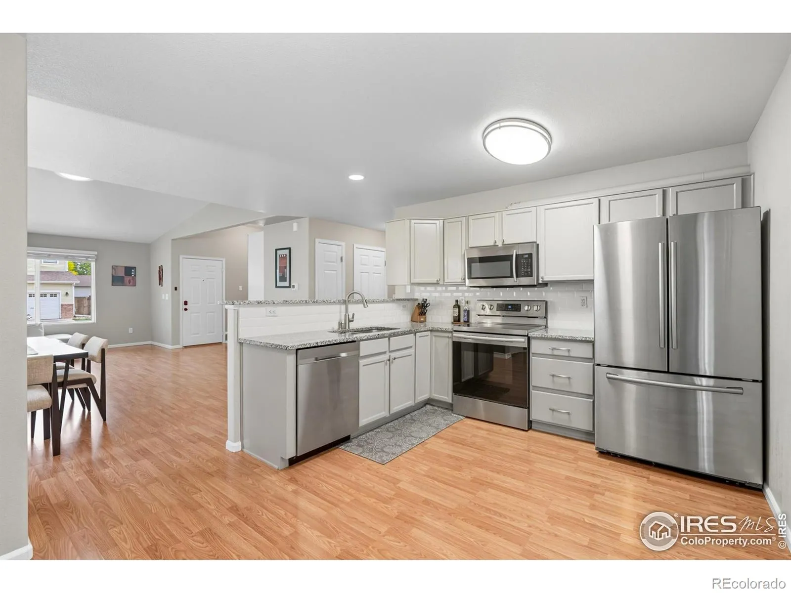 Welcome to 1245 Trail Ridge Road, a bright and well-maintained 3-bedroom, 2-bath home in the desirable Wolf Creek neighborhood of Longmont. With 2,074 square feet of functional living space and an ultra-private backyard retreat, this home is move-in ready and full of potential. From the covered front porch to the shaded pergola out back, this home offers indoor-outdoor living that’s hard to beat. Mature trees, a quiet walking trail, and a creek just beyond the fence create a peaceful vibe that’s rare to find, especially this close to Fox Hill Golf Course and Union Reservoir. The open-concept main living area makes entertaining easy, while the large main-level primary suite includes a spacious walk-in closet. The primary bathroom also serves as the powder room, an efficient setup that keeps everything close and connected. Upstairs, two additional bedrooms and a full hallway bath offer privacy and great flow.The kitchen is a storage lover’s dream, featuring extended cabinetry, a dedicated pantry, and a clean, functional layout. Clean and bright LVP throughout makes maintenance simple and gives the home a modern, fresh aesthetic. The unfinished basement is full of future possibilities with a rough-in for a bathroom and a large crawl space for storage. This garage is a haven for anyone who enjoys projects. It features an insulated attic and exterior walls, along with a 240V-5000W electric heater to keep you warm during the winter months. Organizing your tools and household essentials is a breeze with the efficient French cleat storage system. Power tools can be easily plugged into any of the 8 locations on each wall. Four of those locations on the side walls are new and support 20A. Brighten your workspace with five dedicated lighting circuits. Plus, a new 100A panel in the basement makes installing an electric vehicle charger straightforward. Whether you’re upsizing, rightsizing, or starting a new chapter, this home is ready for your story.