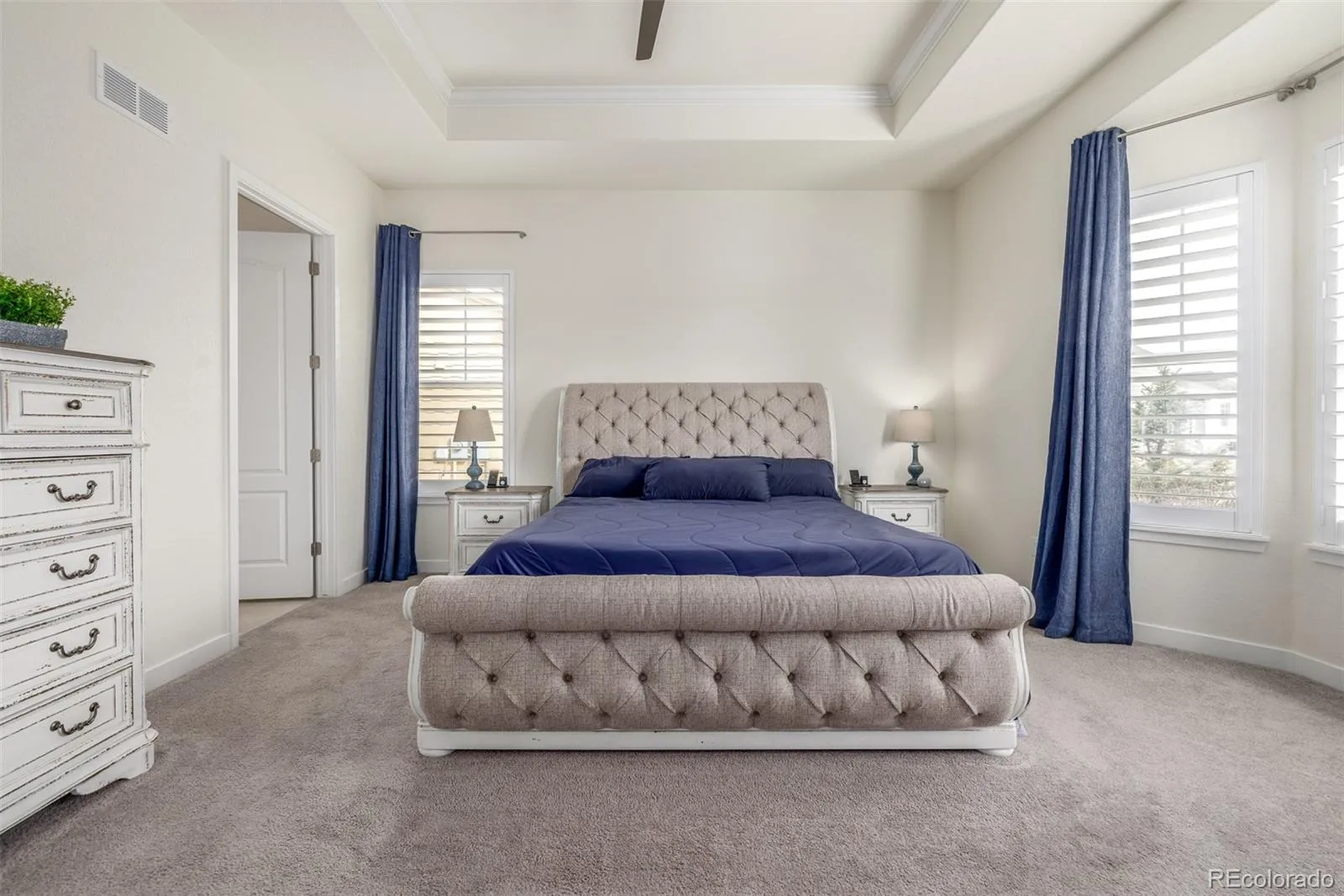 RARE CORNER LOT WITH THE REDFORD 4BD 4BATH HOME w a FINISHED BASEMENT!! Welcome to this exquisite residence located in the highly sought-after 55+ community of Heritage Todd Creek! The 3-car garage immediately sets the tone. Inside, you’ll be greeted by an inviting living room featuring a cozy fireplace that creates the perfect gathering spot. Wood-look floors add warmth and elegance, while the open concept design and high ceilings makes entertaining effortless. Host holiday dinners in the dining area, perfectly situated for both intimate evenings and lively celebrations. Kitchen is a true showstopper boasting sleek solid surface counters, stainless steel appliances, convenient wall ovens, and a striking mosaic tile backsplash that adds a touch of artistry. The center island with breakfast bar provides additional space for meal prep or morning coffee. Whether you love to cook or just enjoy a beautiful kitchen, this one delivers on both function and style. At the end of the day, retreat to the main bedroom, your personal sanctuary. Featuring wood-look floors, a charming bay window, and a private spa-like bathroom, this space offers the ultimate in relaxation. The bathroom is thoughtfully designed with double sinks, a glass-enclosed shower, and tile floors, complemented by a generous walk-in closet to keep everything organized leading directly into your laundry room complete with a sink and plenty of cabinets for storage. For those who work from home, need a reading nook, or want a quiet creative corner, the bedroom provides the flexibility to make it your own. Outdoors, enjoy Colorado’s stunning sunsets from the covered patio backing to one of the amazing water spots, the perfect setting for your favorite beverage or quiet reflection. This community enhances your lifestyle with amenities including a resort-style pool, fitness center, clubhouse, and more, all designed to encourage relaxation and connection.