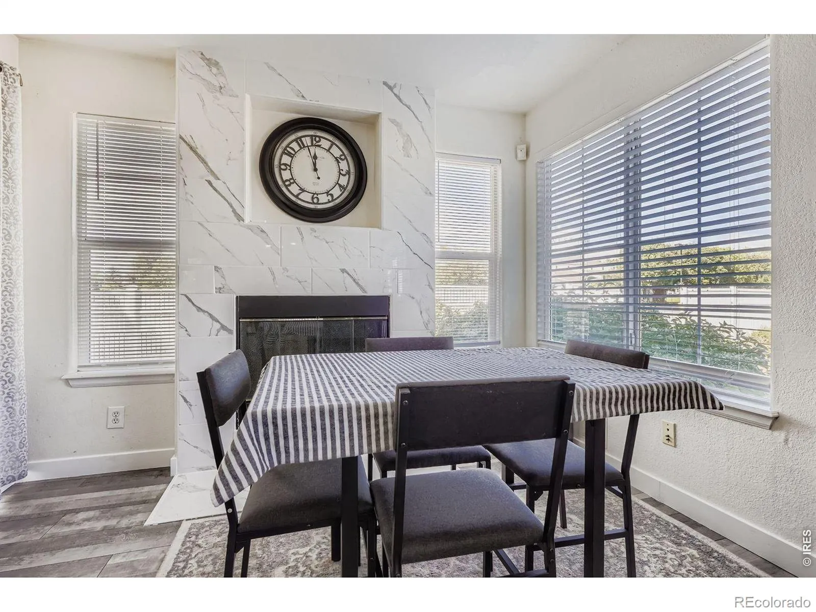 Incredible price! Beautifully updated end-unit townhouse-style condo with an attached 1-car garage. The main level showcases a modern kitchen with quartz countertops, marble backsplash, newer stainless-steel appliances, a new sink and faucet, updated hardware, and heated floors. A spacious living room and separate dining area with a cozy gas fireplace open to a private outdoor space through sliding glass doors. Upstairs, the primary suite features an updated bath with a soaking tub, while a secondary bedroom is served by another fully updated bathroom. New laminate wood flooring through the first and second floor. The full unfinished basement offers abundant storage and includes the laundry area. The garage is equipped with an outlet for an electric car charger. Convenient location and beautifully updated!