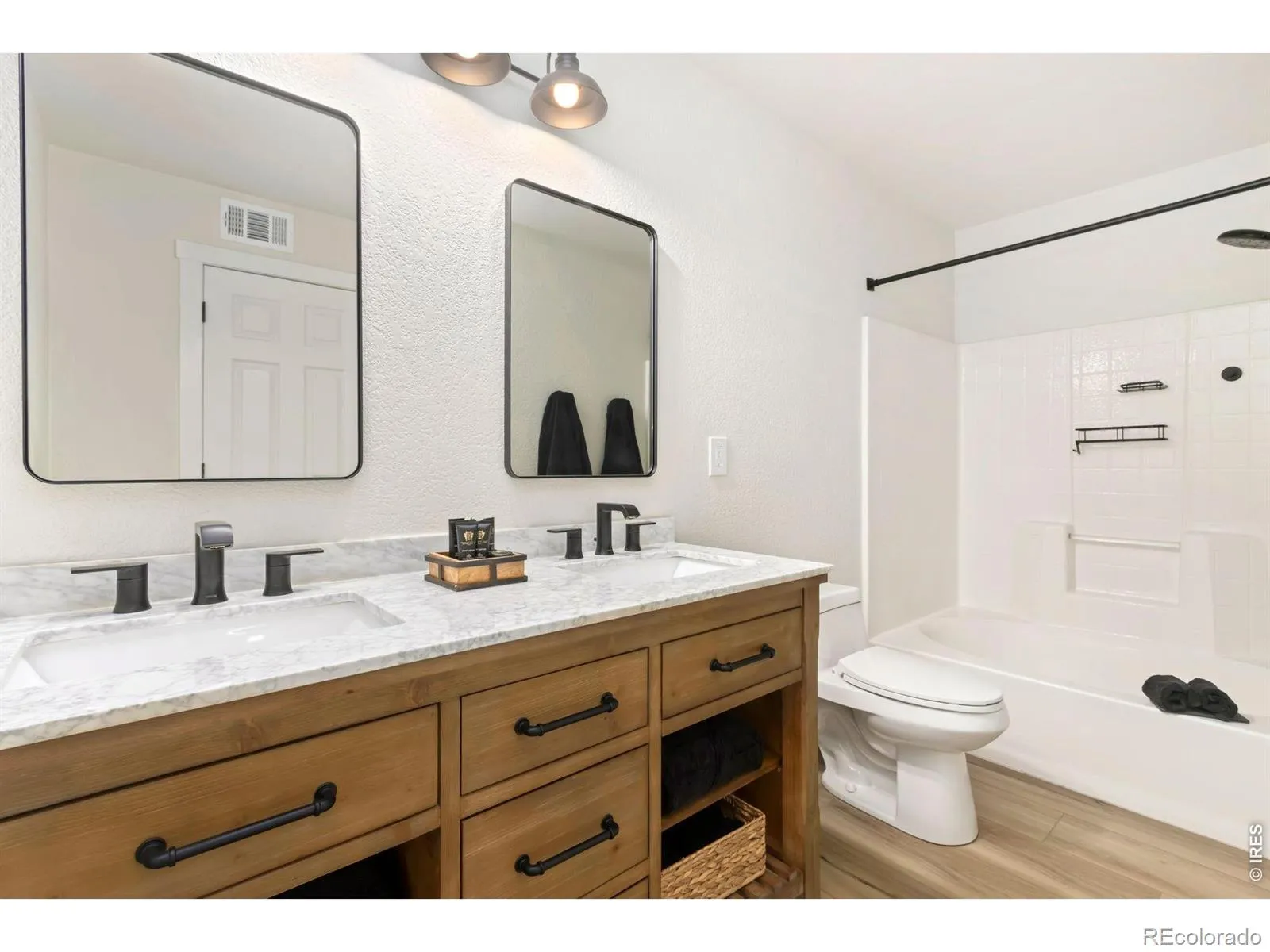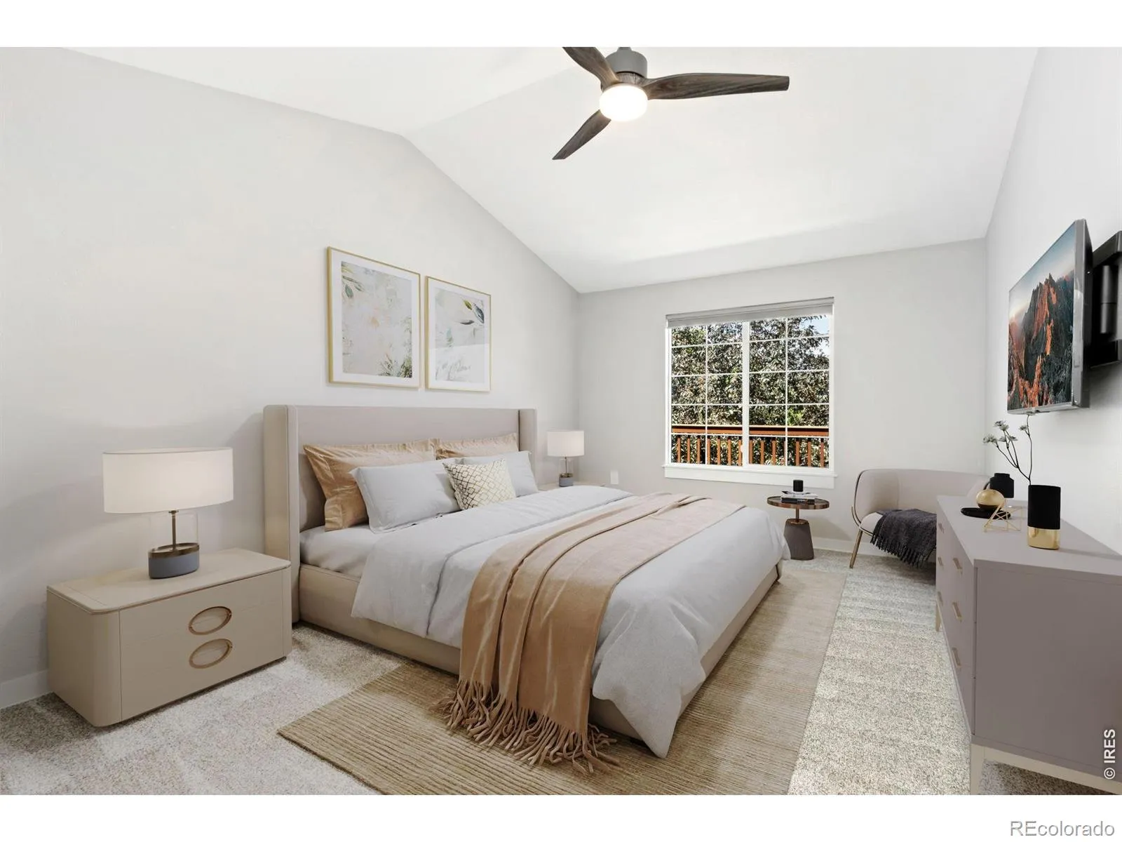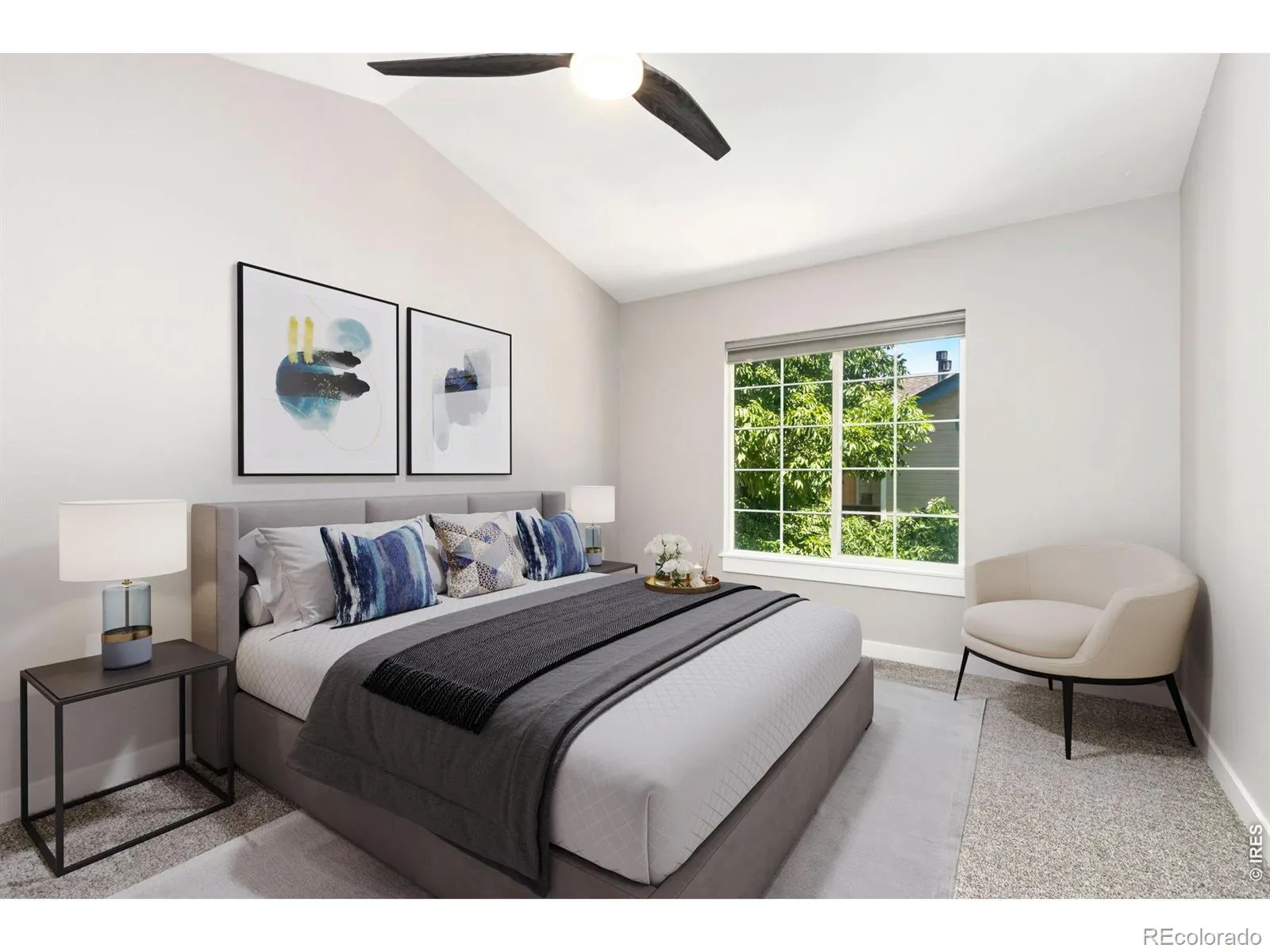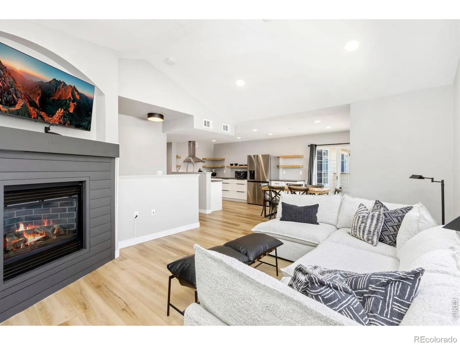 Beautiful remodeled condo. Attention to detail and quality shines throughout this fully renovated, private top-floor condo. Spacious, vaulted, and filled with natural light, this exceptional unit offers 3 bedrooms, 2 bathrooms, two balconies, a one-car detached garage, and two additional parking spaces. The inviting living area features a shiplap-surround fireplace, while the generous primary suite includes a walk-in closet and beautifully updated finishes. Recent upgrades include fresh double-coat paint with primer, top-down blinds, 9″ luxury vinyl plank flooring, and Brazen II carpet with upgraded padding.The extended kitchen is thoughtfully redesigned with a new Braun range with built-in air fryer, LG side-by-side refrigerator, soft-close drawers, custom 3″ wood shelving, and new tile. Bathrooms feature Carrara marble vanities, new fixtures, and updated toilets. Additional improvements include all new lighting (including recessed lighting and ceiling fans), outlets and covers, vent covers, door hardware, hinges, a new A/C unit, and a washer and dryer that remain with the property. Residents enjoy access to a community pool and hot tub through the HOA. Located in a quiet community near CSU, hiking and biking trails, bus routes, shopping, Horsetooth Reservoir, the Temple Grandin Equine Center, and all that Fort Collins has to offer. Prime location, exceptional upgrades, and truly move-in ready. Pre-Inspected!