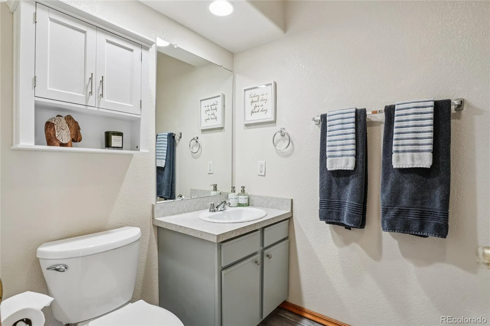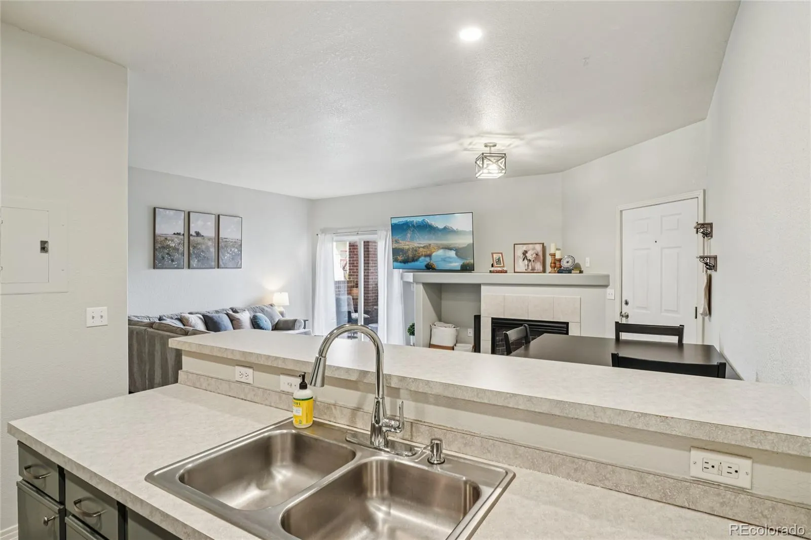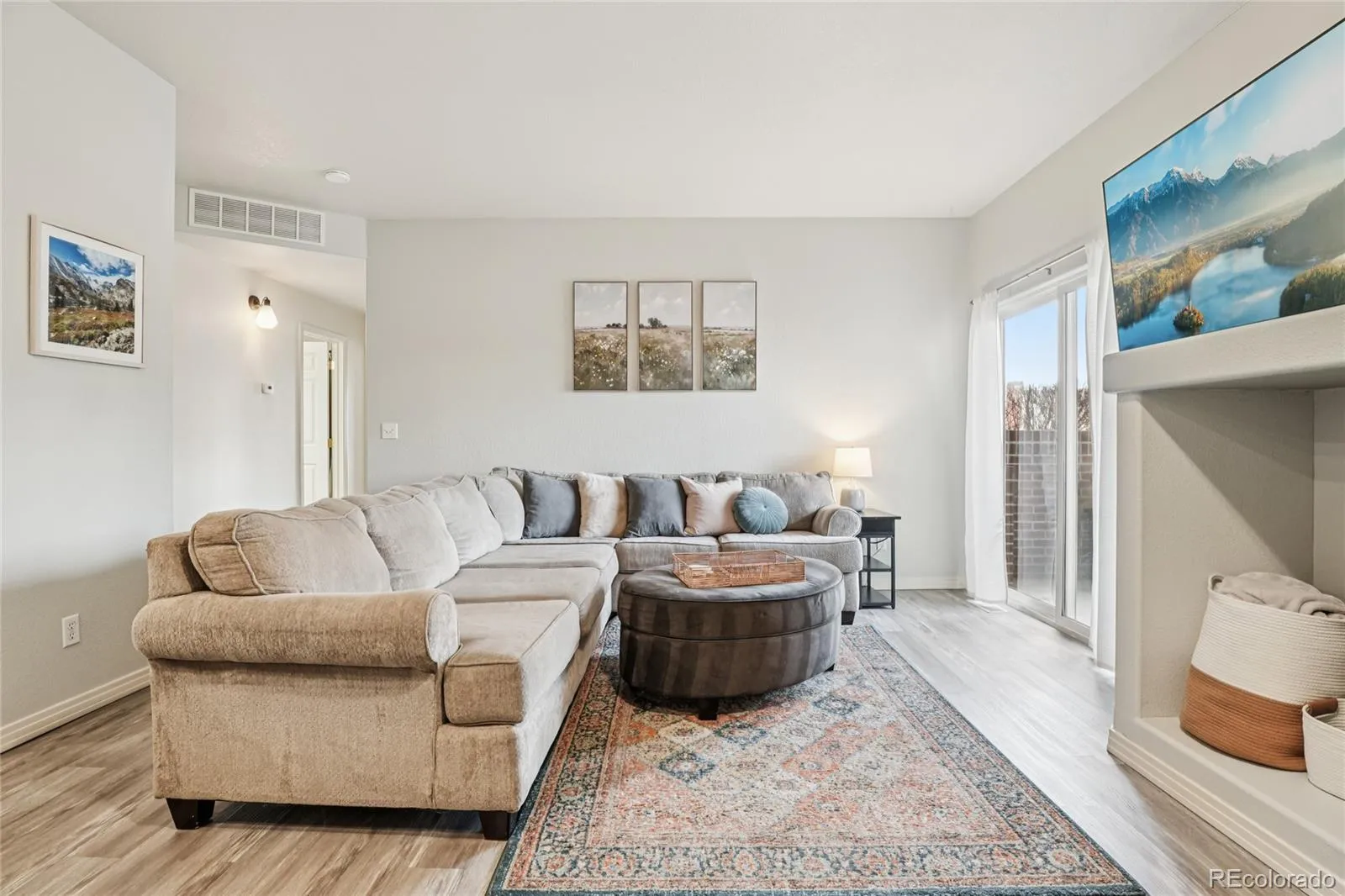Enjoy zero-maintenance living in this main-floor turnkey condo in Thornton’s centrally located Oakshire neighborhood. This east-facing residence features fresh interior paint, stunning laminate hardwood floors, and an open floor plan for functional everyday living. Enjoy preparing a meal in the updated kitchen, complete with stainless steel appliances, painted two-tone cabinetry, and a cozy breakfast counter for barstool seating. Step out of the large glass slider leads to a sizeable covered patio with a bonus closet for added storage. The laminate hardwoods extend into a generously sized secondary bedroom, a full bath, and the primary suite. This spacious retreat includes a walk-in closet, a linen closet, and an ensuite 4-piece full bath. Additional features of this property include in-unit laundry, all appliances included, a large crawlspace for added storage, a gas fireplace, and 2 reserved parking spots. The low HOA includes a community pool, trash, water, and sports courts. Ideally situated within minutes of shopping, dining, public transportation, and major roadways. This property is ready for its next chapter; all it needs is you.