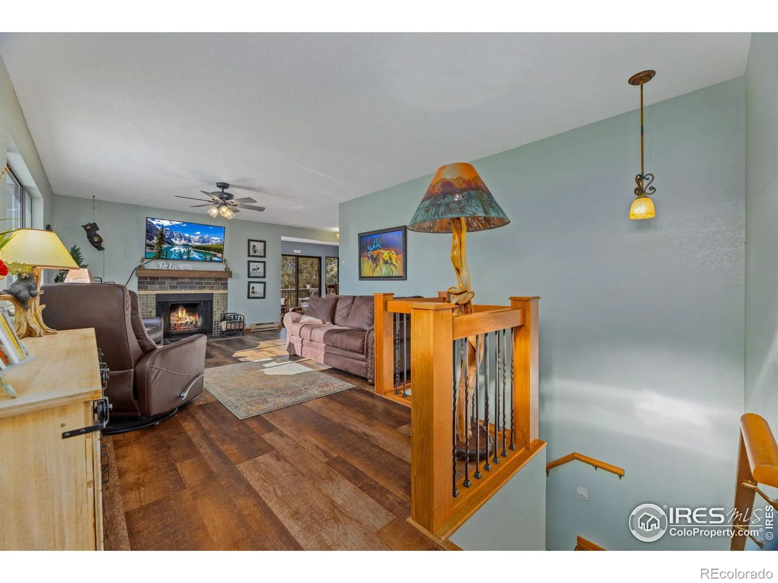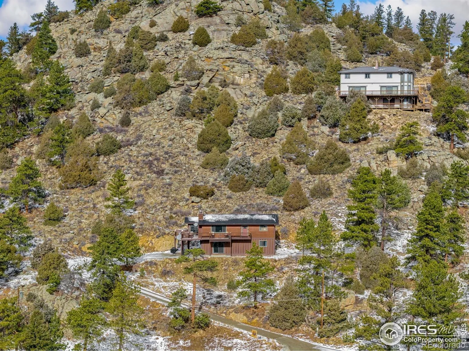 Discover the quintessential Rocky Mountain lifestyle at this beautifully updated mountain retreat set on 1.3 private acres with sweeping panoramic views. This 3-bedroom, 2-bath home is being sold fully furnished and turnkey and is currently operating as a successful active short-term rental – offering both immediate income and an exceptional private getaway. The main living level welcomes you with a family room featuring a wood-burning fireplace and windows that frame Twin Sisters, Estes Cone, and the Estes Valley below, filling the home with natural light. The updated kitchen with granite countertops flows seamlessly into the dining area, creating an inviting space for gatherings. Just off the dining room, a sunroom with sliding glass doors opens to the wrap-around deck, extending living and entertaining outdoors. Two guest bedrooms and a full bath complete this level. The walk-out lower level provides a separate living room and private primary bedroom with ensuite bath and its own exterior access – ideal for owner privacy, guest flexibility, or enhanced rental appeal. Major community infrastructure improvements include an updated water system, road infrastructure, and fire hydrants have been completed. Despite its serene, elevated setting, the property is just minutes from downtown Estes Park, the Stanley Hotel, and the trails and scenery of Rocky Mountain National Park. This Estes Park home blends privacy, views, turnkey comfort, and proven rental history in a distinctive mountain setting.