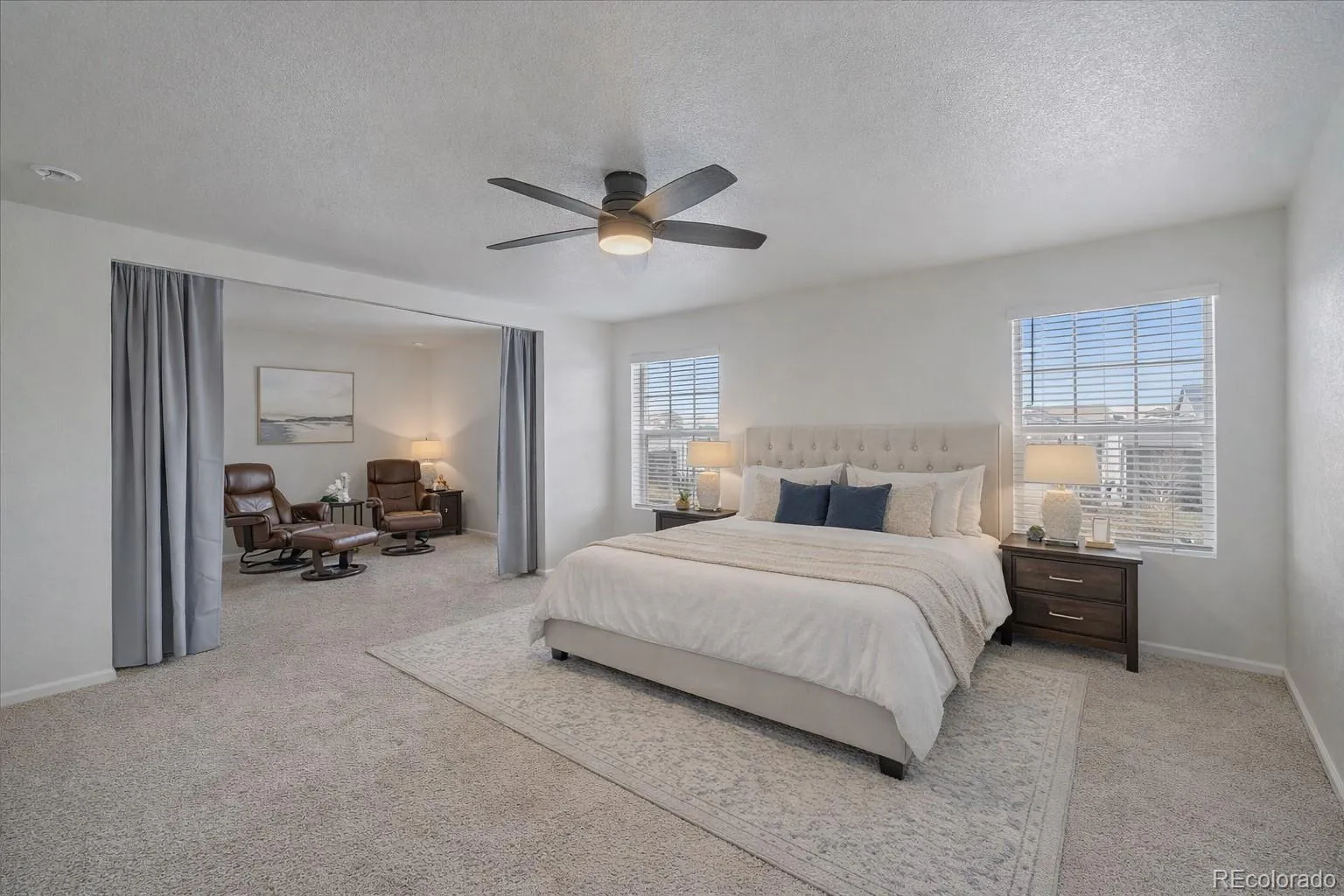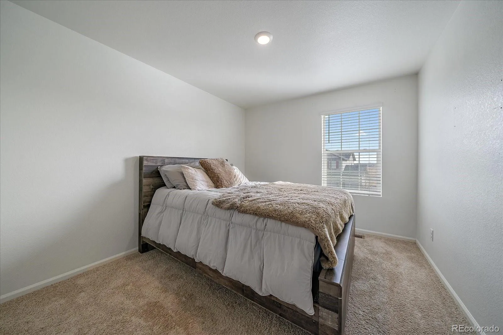Thoughtfully designed and beautifully maintained, this near new single family home offers a seamless blend of modern functionality and timeless style in Neighbors Point. With open living spaces that are inviting and designed for connection, this home redefines everyday living. The main level is anchored by wide-plank flooring that flows effortlessly from the entry through the kitchen and great room, creating warmth and continuity. The kitchen features rich espresso cabinetry, granite countertops with natural movement, stainless steel appliances, a spacious center island with seating, and a walk-in pantry—perfectly positioned to overlook the living and dining areas for effortless entertaining. Natural light fills the great room, while sliding glass doors extend the living space to a covered patio and expansive fenced backyard. A thoughtfully designed paver patio creates an additional gathering area, ideal for enjoying Colorado evenings. The primary suite offers generous proportions including a large sitting room, a walk-in closet, and a bright ensuite bath with dual vanities. Two additional bedrooms, a full bath, and convenient upper-level laundry complete the second floor. The full unfinished basement presents endless potential for future expansion, storage, or customization. Additional features include central air, tankless water heater, solar panels and a three-car attached garage. Located near parks, trails, Centennial Elementary, shopping, and everyday amenities, this home delivers comfort, style, and room to grow in the desirable community of Neighbors Point.