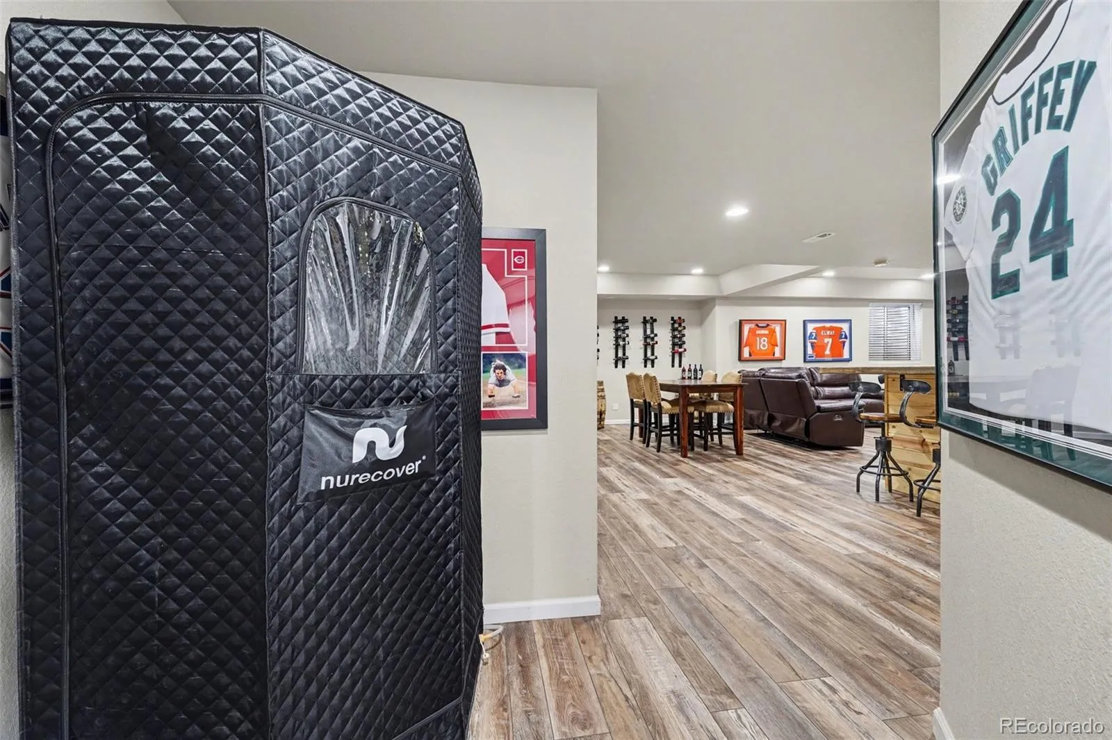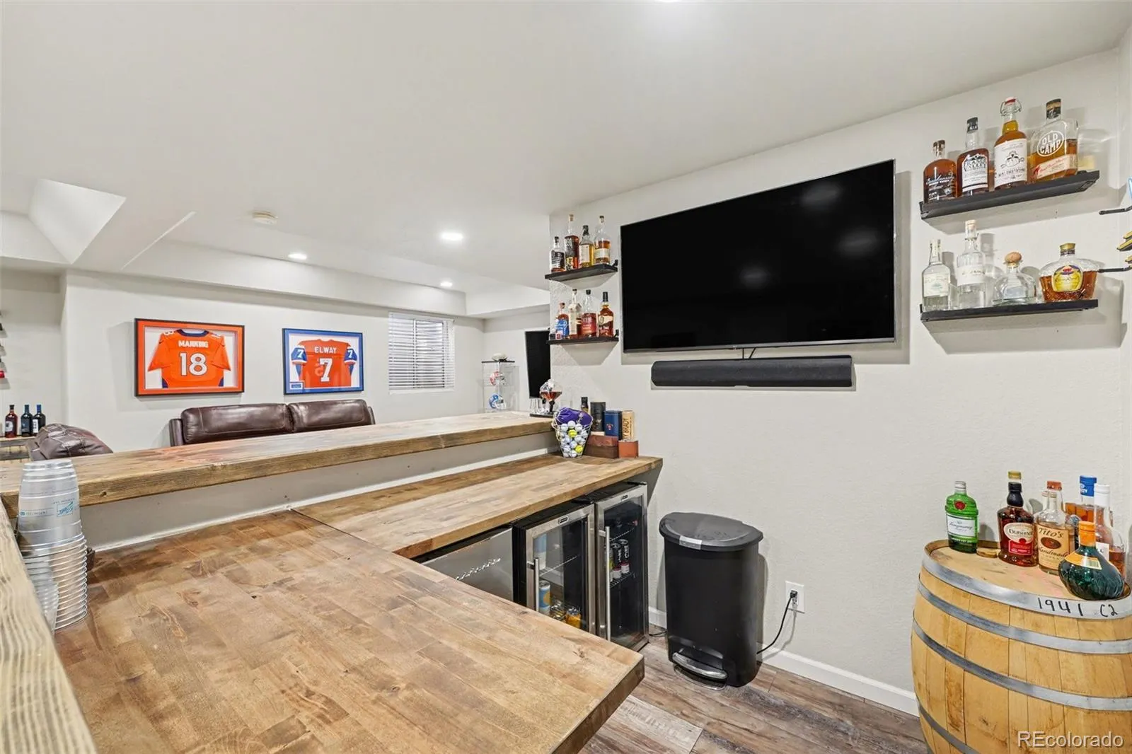 Welcome to this beautifully updated home in the desirable Clarke Farms neighborhood, offering standout features, thoughtful upgrades, and a layout that truly lives large. From the moment you enter, soaring vaulted ceilings and abundant natural light create a grand yet inviting feel. The open floor plan seamlessly connects the main living spaces, making this home ideal for both everyday living and entertaining. The updated kitchen is the heart of the home, featuring an oversized statement island with quartz countertops, perfect for prep and serving. Clean white cabinetry is paired with stylish modern hardware, while two-toned quartz counters add depth and character, and a stacked subway tile backsplash completes the contemporary design. The kitchen flows effortlessly into the family room, living room, dining area, and outdoor space, creating a central hub for gathering. Upstairs, the spacious primary suite offers a private retreat. The remodeled five-piece bath feels spa-like, showcasing an elegant freestanding soaking tub, large walk-in shower with striking herringbone tile, and carefully selected finishes throughout. The finished basement is an entertainer’s dream. Enjoy an oversized recreation room perfect for game days and movie nights, plus a butcher block bar for easy hosting. The dedicated golf simulator room is a true highlight, complete with a short-throw projector, wiring and device attachments, Carl’s Place high-impact screen that doubles as a movie screen, and hitting mat with turf carpet. Additional features include fully paid-off solar panels keeping electric bills around $30/month, newer roof and water heater, attached 3-car garage, wood-stamped concrete patio, and a spacious 8,364 SF lot. With its unique upgrades, energy efficiency, and a lifestyle-enhancing blend of comfort and entertainment, this is a rare opportunity to own a truly exceptional Clarke Farms home.