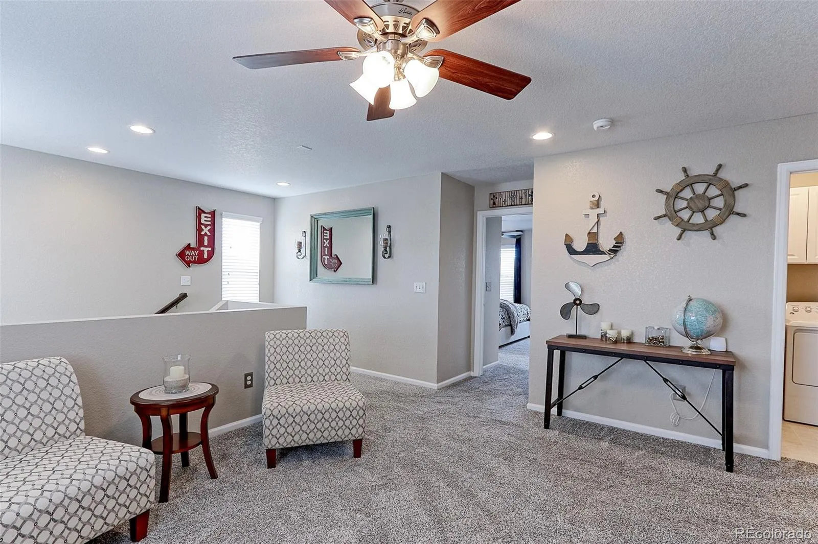 Upstairs, you’ll find a versatile loft that could easily be converted into a 4th bedroom, two additional bedrooms, a full hall bath, convenient laundry room, and a spacious primary suite. The primary retreat includes a walk-in closet, dual sinks with upgraded counter height, and a walk-in shower. All bedrooms feature upgraded ceiling fans, and the home is pre-wired for surround sound.