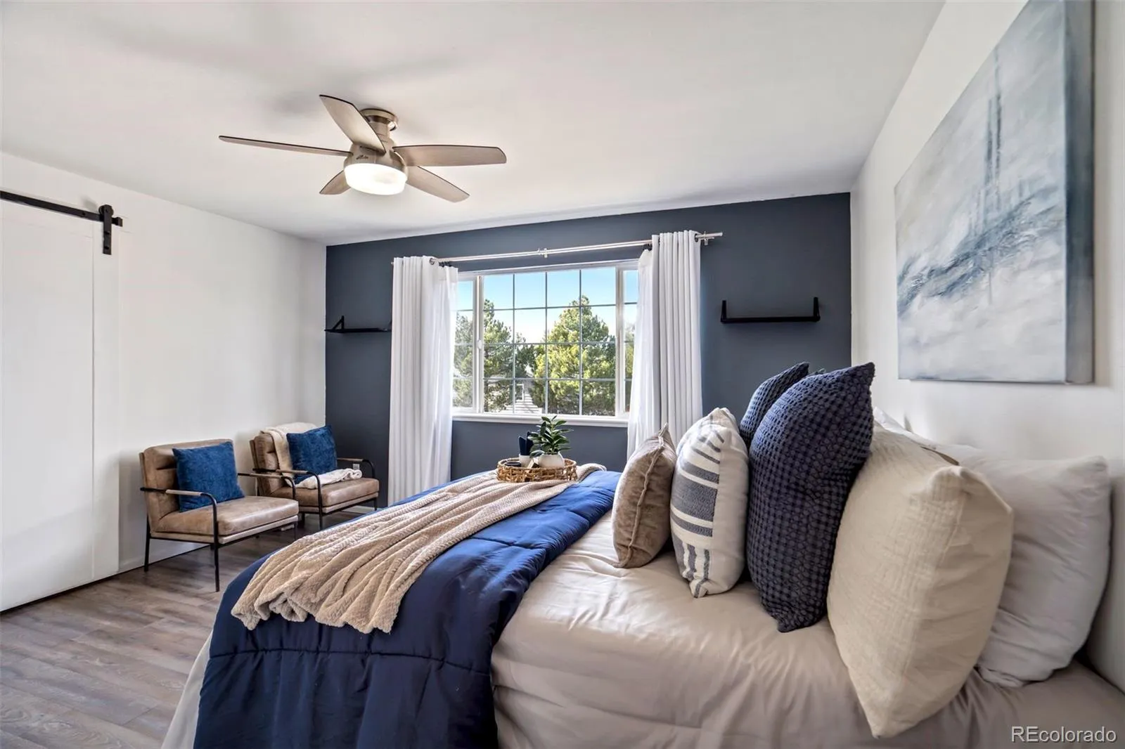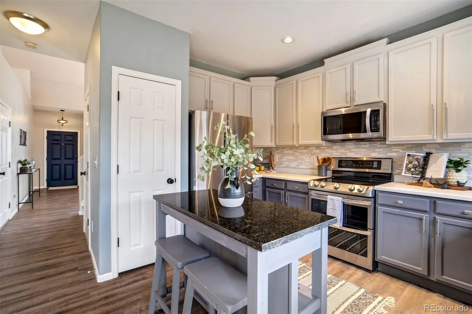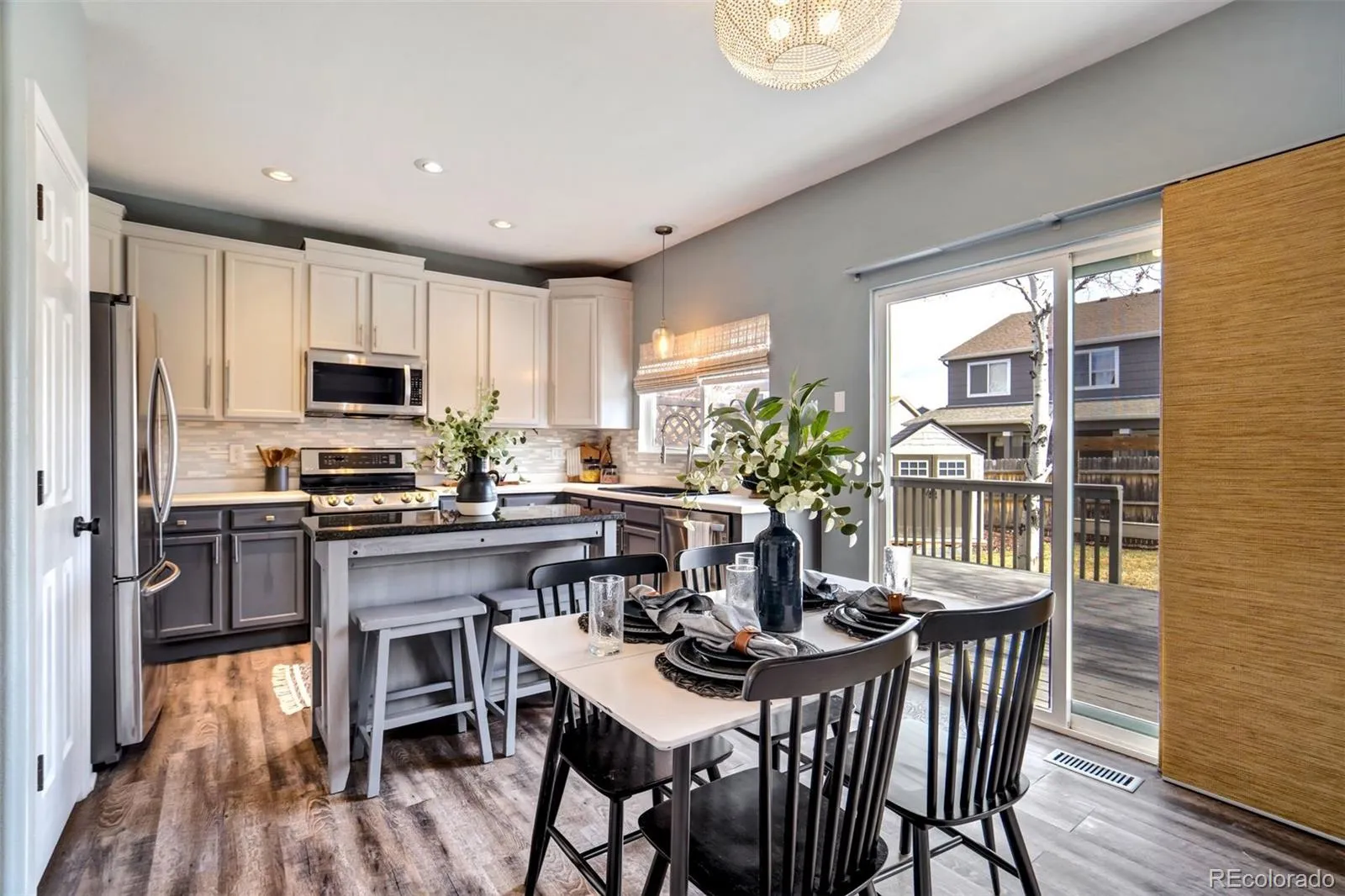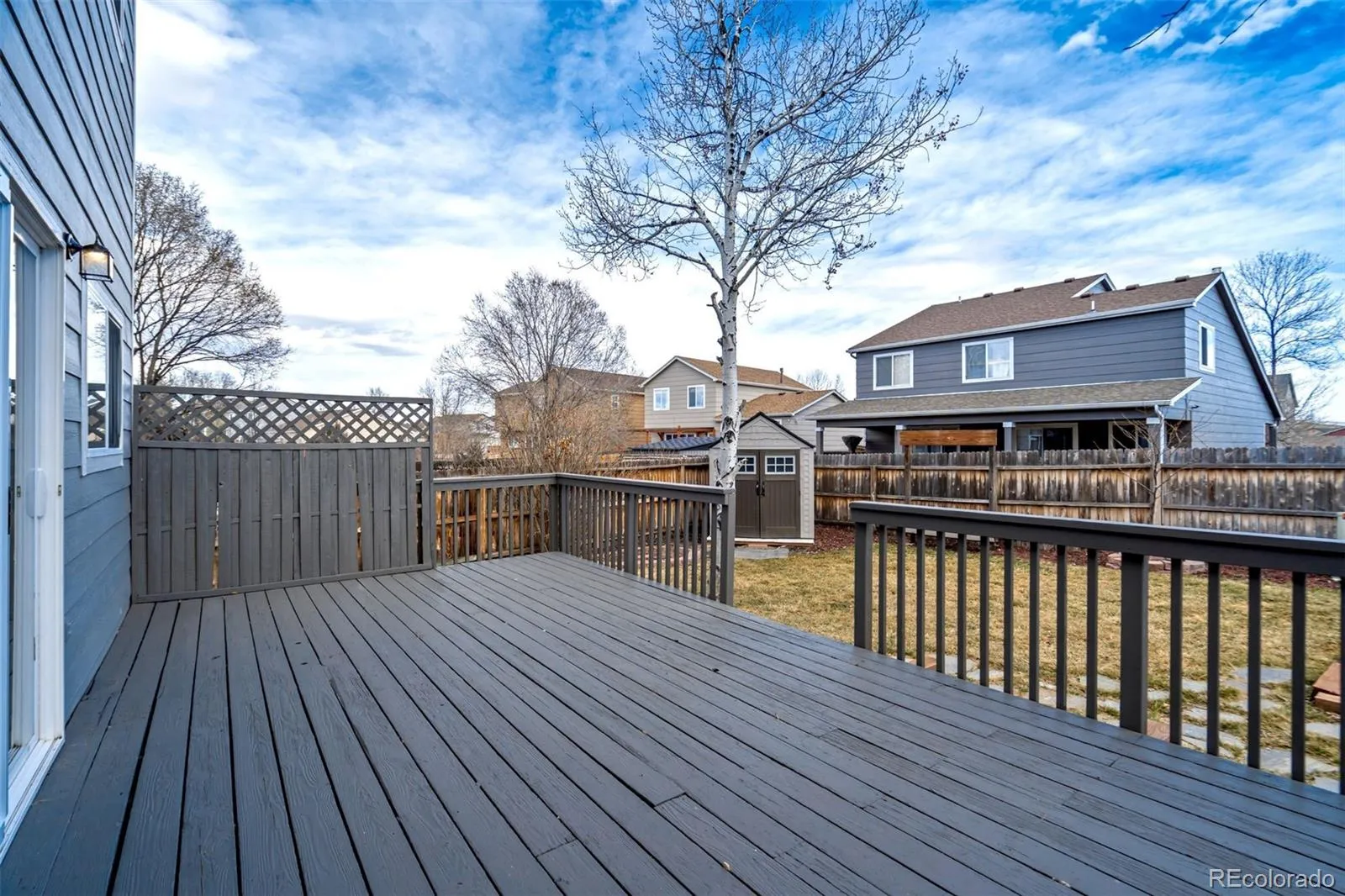 Welcome to this stunningly updated two-story home in desirable Springs Ranch, where style, comfort, and convenience come together effortlessly. Meticulously maintained and thoughtfully upgraded, this home greets you with soaring vaulted ceilings, modern flooring, updated lighting, and designer finishes that create a bright and welcoming atmosphere. The inviting family room, centered around a cozy gas fireplace, opens seamlessly to a spacious kitchen designed for both everyday living and entertaining. You’ll love the tall cabinetry, stainless steel appliances with double oven, generous pantry, and ample dining space—perfect for gathering with family and friends. Upstairs, retreat to a spacious primary suite featuring a private bath, walk-in closet, and beautiful mountain views that make every morning special. The upper level also offers a second bedroom, full bath, convenient laundry area, and a versatile loft easily converted into a third bedroom, home office, or bonus living space. Step outside to a private deck overlooking the fully fenced backyard—ideal for summer BBQs, relaxing evenings, or entertaining guests. The oversized two-car garage provides excellent storage, and brand-new central air conditioning ensures year-round comfort. Perfectly located near schools, parks, and shopping and dining along the Powers Corridor, with easy access to Peterson Space Force Base and Schriever Space Force Base, this home offers both convenience and lifestyle. Stylish updates, flexible living spaces, and an unbeatable location—this is the home you’ve been waiting for.