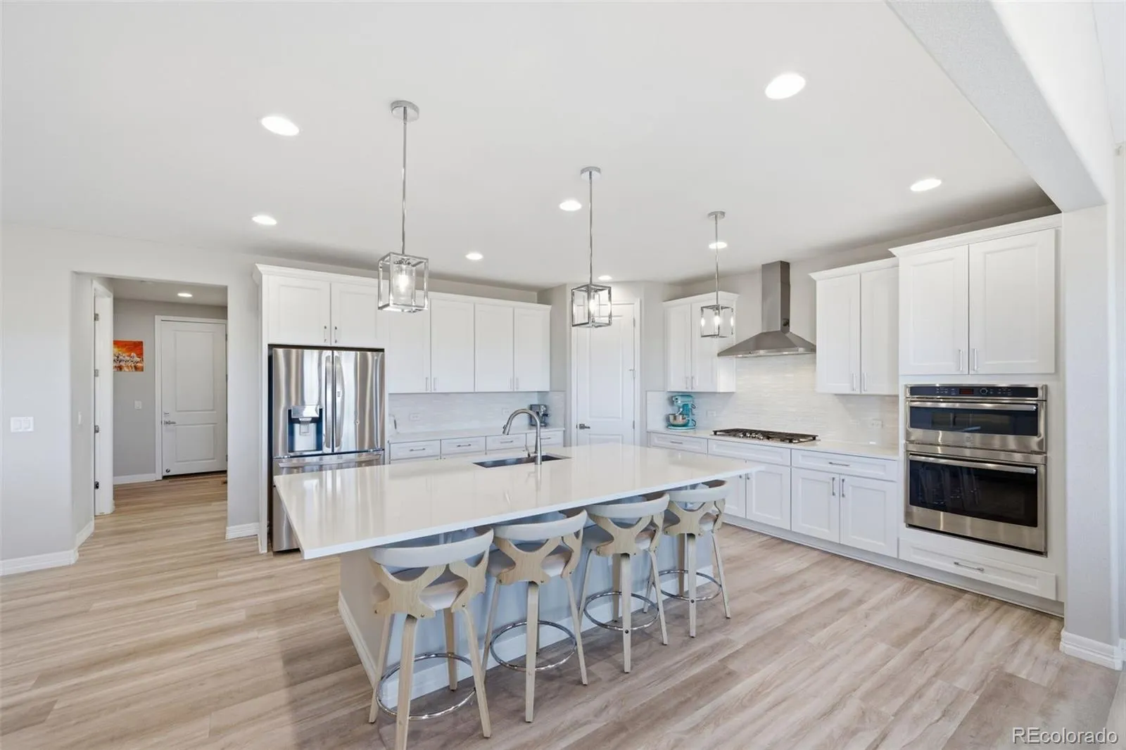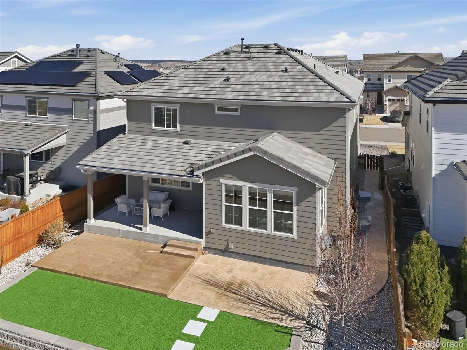 Ideally situated with stunning Front Range and mountain views backing to open space, this two-story residence in sought-after Meridian offers an exceptional setting, combined with luxury finishes and modern touches. The light and bright open floor plan features beautiful LVP floors, high 10’ ceilings, and a neutral palette to complement the functional layout of the main living spaces. The gourmet kitchen is equipped with an oversized center island, a stainless steel appliance suite, quartz countertops, upgraded shaker 42” cabinetry, and a walk-in pantry. Enjoy hosting dinner parties or intimate family meals in the formal dining space, drenched in natural light and offering unparalleled westerly facing views. Outside, the partially covered patio is ready for summer BBQs while overlooking low-maintenance professional landscaping and a turf yard. Upstairs, the private living quarters include a bonus loft, three generously sized secondary bedrooms, a full bath, laundry, and the owner’s suite. This serene retreat features tre-ceilings, a sizeable walk-in closet, and a spa-like ensuite bath with a huge walk-in glass-and-tile shower. Additional features of this turnkey residence include a main-floor home office, an attached 3-car garage, and a full, unfinished, plumbed basement ready for future expansion or ample storage. Meridian is an established family-friendly community with an outdoor pool, parks, a playground, and miles of trails. Ideally situated within minutes of award-winning Douglas County schools, and endless shopping, dining, and entertainment in Downtown Parker, Park Meadows, and DTC, this residence stands out as a unique opportunity in a premier neighborhood.