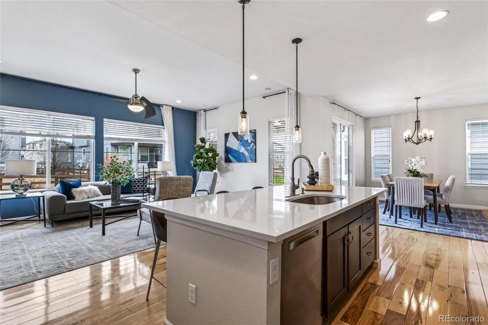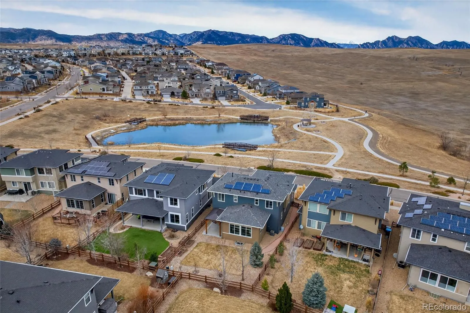 This is the home you’ve been waiting for! With stunning mountain and pond views, designer finishes, gleaming hickory hardwood flooring, a fully finished basement, central vacuum throughout the home, exterior Govee lighting, and tandem 3 car garage, this home is not to be missed. This home showcases 4 Bed/3.5 Bath, 3,698 sq. ft., and a gourmet kitchen complete with Stainless Steel appliances, double oven, quartz counters, an abundance of cabinets, & oversized walk-in pantry. The kitchen flows seamlessly into the open floorplan which includes the adjoining dining room, & spacious living room making this home ideal for entertaining. The main floor also offers a fantastic front office (or formal dining) with mountain views, a grand foyer with new light, & mudroom just off of the garage entry. Upstairs enjoy a large loft with endless possibilities, 2 secondary bedrooms with ample closet space & easy hallway bath access, & convenient laundry room with included washer & dryer. The primary suite boasts breathtaking mountain views, a 5-piece ensuite bath, & spacious walk-in closet. The relaxing primary bathroom retreat showcases a soaker tub, dual vanity, & stand-up shower. In the finished basement enjoy an expansive entertainment space with built-in surround sound, & bar, 4th bedroom & full bath. Out back enjoy a covered concrete patio, garden beds, & a fully fenced yard. Sip coffee or cocktails from the comfort of your front porch while taking in the incredible sunsets & pond views. Candelas is a mater planned community offering resort-like amenities including an onsite school, 2 swim and fitness clubs, 13.5 miles of trails, a community garden, countless parks, community events, & so much more! Arvada is centrally located to nearby schools, shopping, & dining. Candelas is just 20 minutes to Boulder, 25 minutes to Denver or 30 minutes to DIA, with easy access to Indiana & I-70. Don’t miss your opportunity to own this remarkable home, contact us today for a private showing!