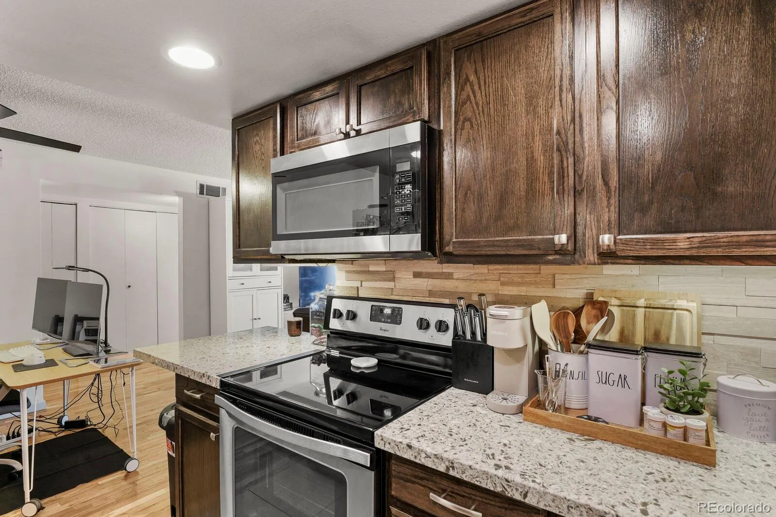 Awesome lending opportunity through Key Bank for 2 programs; 100% financing – NO PMI loan program AND for $5,000 Neighbors First KeyBank Grant that can be used towards closing costs! Lets get creative to make this work. Looking for an affordable condo with an amazing location? Look no further…this 1 bed, 1 bath unit is a corner unit on the 2nd floor in the Woodside community. There are not neighbors above. Located close to Lowry Center shops and park, restaurants, and the Highland Canal Trail, Lowry dog park, quick drive to Cherry Creek shopping centers. This unit has been remodeled with hardwood floors throughout, updated kitchen with granite counters, stainless steel appliances included, new full size washer and dryer included, updated bathroom with tile walls in the shower and tile floors, updated interior paint, stone wood fireplace, double pane vinyl windows, central air. There is a large walk in closet for a lot of storage. Includes 1 Reserved Parking space right in front (#138) and some guest parking spots. Enjoy this move-in-ready condo in a great community!