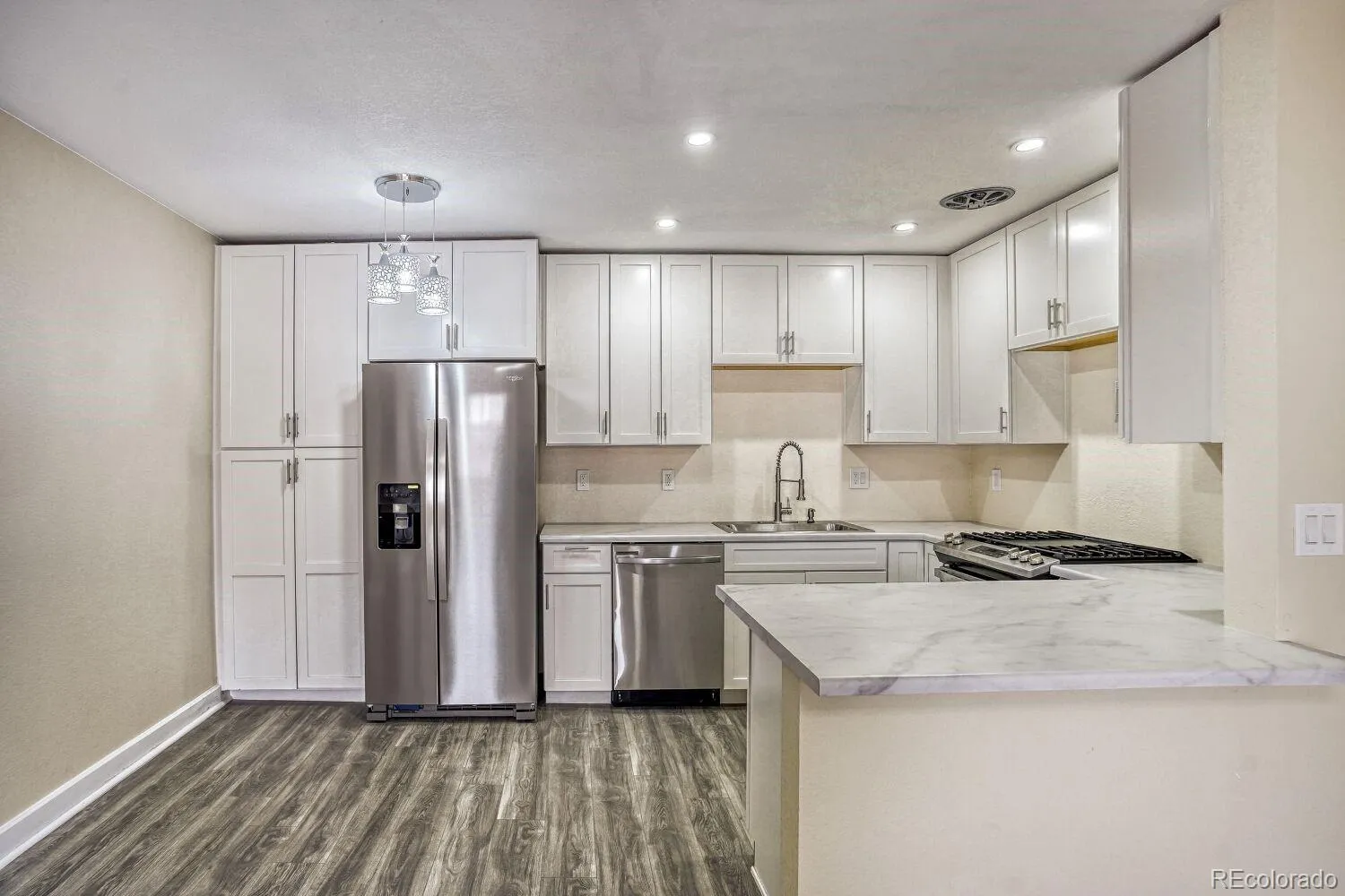 Enjoy effortless living in this fully remodeled 2-bedroom condo designed for comfort and style. This bright, open living space showcases brand new luxury vinyl flooring, fully retextured walls and ceilings, and fresh paint throughout, creating a modern contemporary feel with a clean, polished look. The beautifully renovated kitchen features new cabinetry, sleek countertops, and stainless steel appliances. Two spacious bedrooms provide comfortable and functional living space, while the fully updated bathroom adds a stylish, modern touch. Every detail has been thoughtfully renovated, making this home truly turnkey.