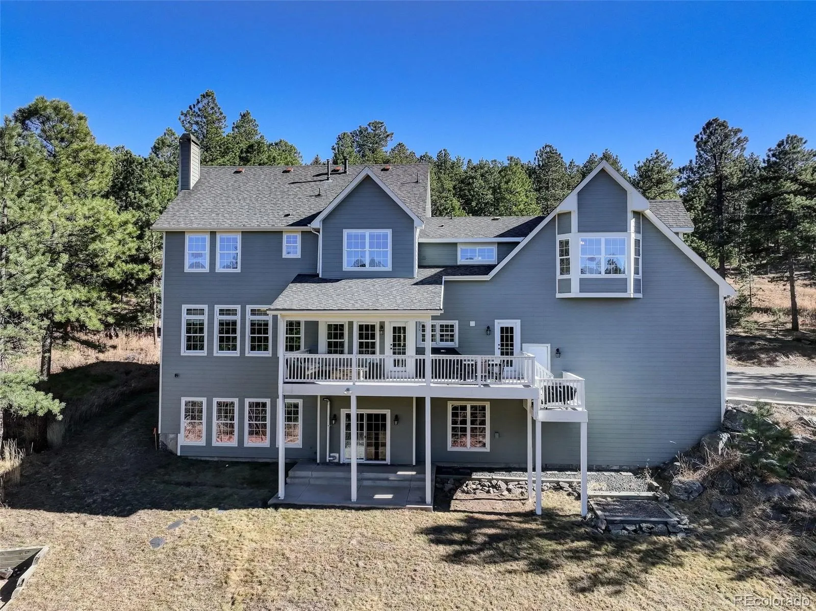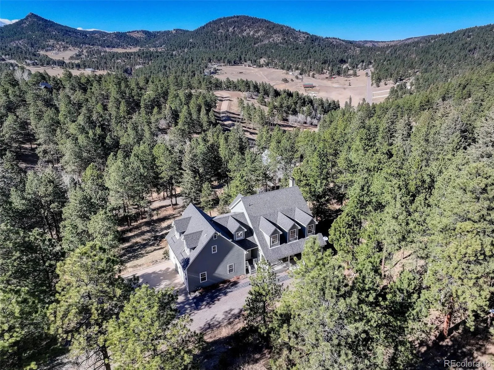PRICE REDUCTION! NEW ROOF AND NEW SEPTIC COMPLETED 3/31/26! Fully updated mountain retreat close to the city! Nestled in the foothills, in the desirable Homestead neighborhood, is your opportunity for peace and serenity, conveniently located to all the features of true Colorado living. Located on the back side of the Homestead for NO 285 ROAD NOISE! No room has been untouched as the home was thoughtfully updated and remodeled to combine the charm of the Cape Cod architecture with its mountain surroundings. Remodeled kitchen with updated smart appliances, remodeled bathrooms, and a permitted and professionally finished basement make this property turnkey. Enjoy the area wildlife and quiet surroundings from the multiple covered and uncovered outdoor porches/decks. Cozy up to one of the two newer pellet stoves to chase the evening chill. The new basement rec room with a wet bar and projection TV system offers the ideal location for entertaining or a hangout away from the rest of the home. Oversized garage with tall doors, ample storage, and a workshop area, along with expansive parking, offers plenty of space for all your toys. A convenient office on the main level offers the perfect work-from-home space. Upstairs, you will find five bedrooms thoughtfully laid out for household members or guests and a primary suite with amazing views and a remodeled five-piece bath complete with a free-standing soaking tub. Updates aren’t just aesthetic as the owners have installed an on-demand hot water tank, new furnace and A/C units, additional insulation, a whole house fan an prepped electric necessities for generator connection. With NEW ROOF AND SEPTIC and community water eliminating the cost of well maintenance, this home is set for the next 20-30 years! Located just 10 minutes from Aspen Park shopping/dining and popular hiking trails, 15 minutes from Highway C470, and 20 minutes from Red Rocks, this home has it all! Agent Owner.