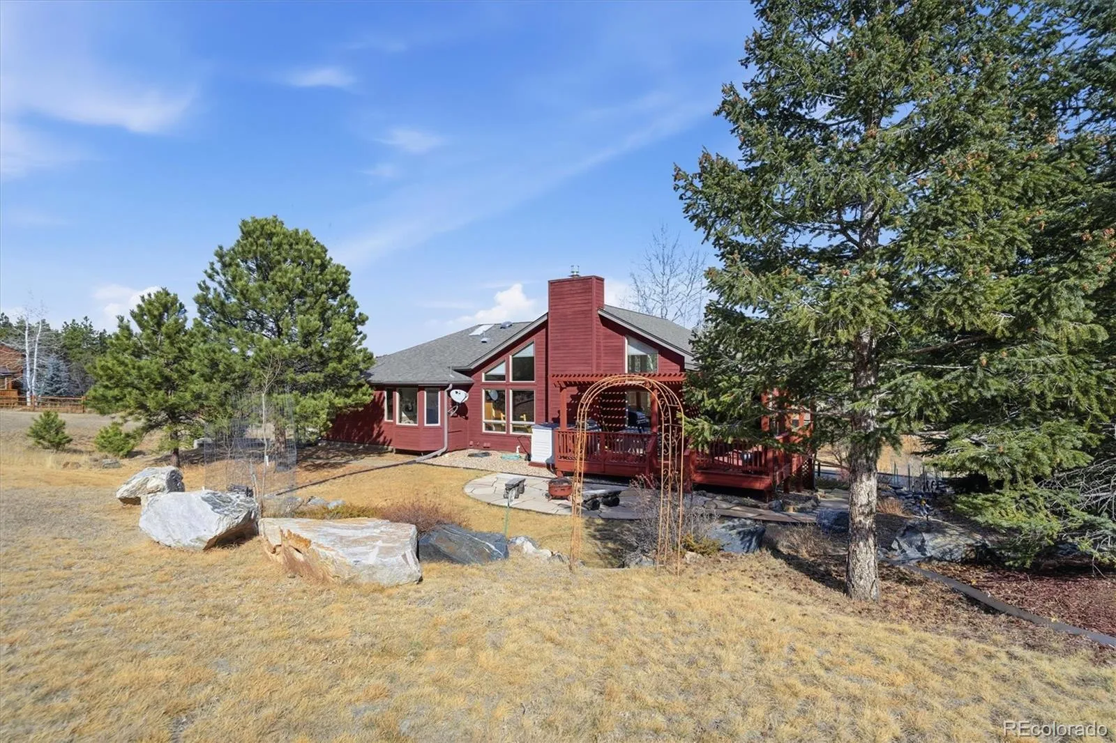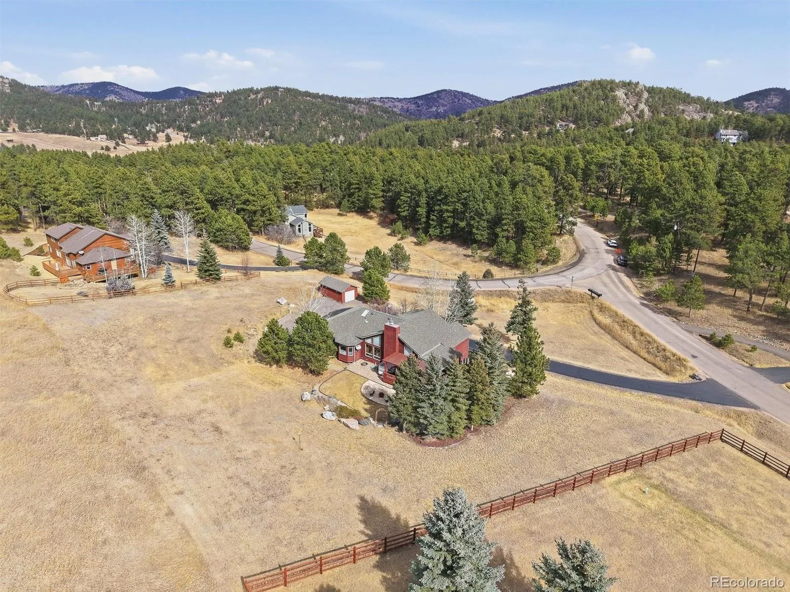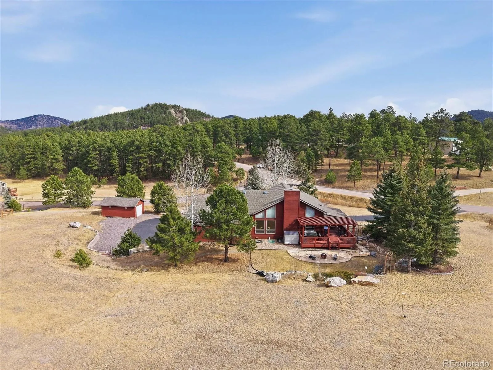 Immaculate foothills living in Homestead on a rare, usable 2-acre corner lot—private, peaceful, and just minutes to the US-285 corridor for an easy Denver commute. This beautifully maintained ranch offers true main-floor living with 4 bedrooms and 3 updated baths, gleaming hardwood floors, spotless carpet, vaulted ceilings, and a striking moss-rock fireplace with gas log insert anchoring the great room.