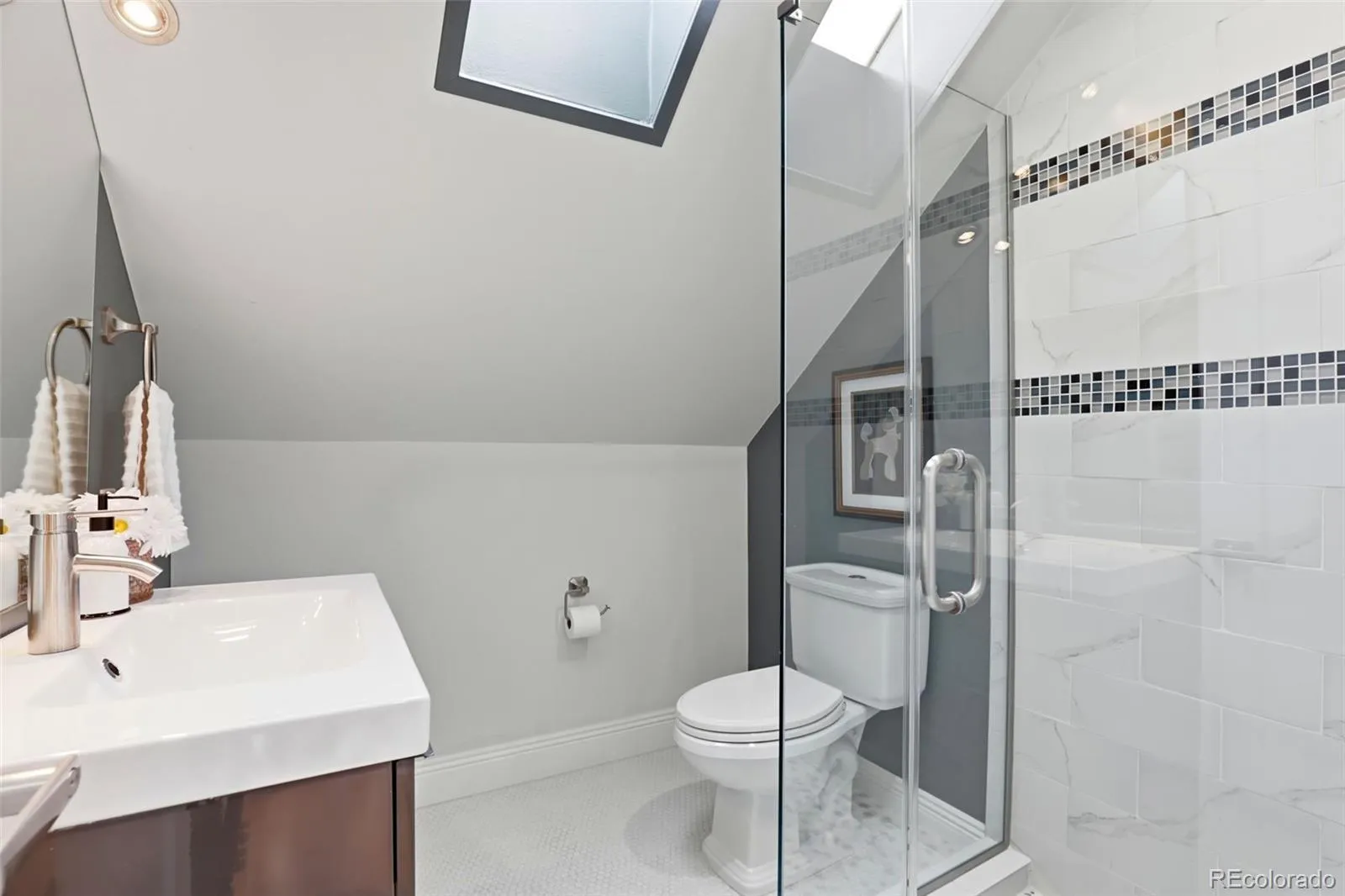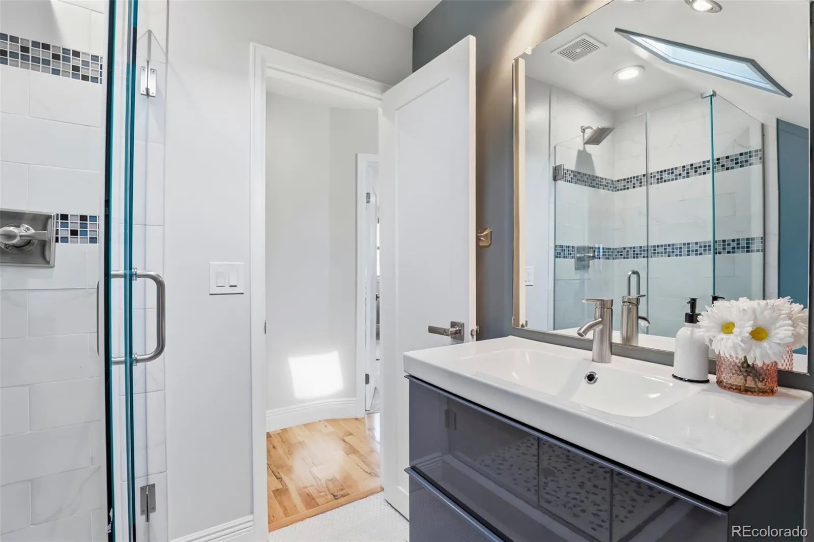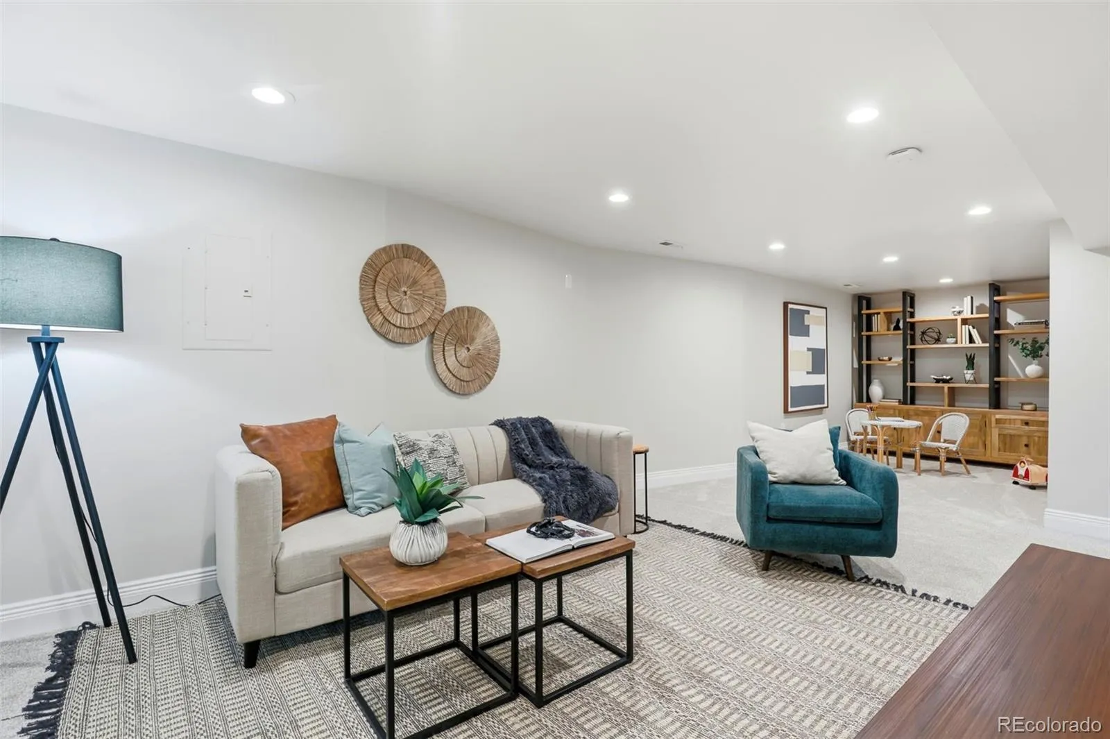 The second level offers a serene primary suite including dual walk-in closets and a spa-inspired bathroom with jetted tub, designed for ultimate relaxation. This level also includes a spacious secondary bedroom and three-quarter bathroom with a skylight. The finished basement provides a flexible living space, featuring a family room, a full bathroom, and two bedrooms ideal for hosting guests, multigenerational living, a gym, office space, or creating a private retreat. A new roof adds piece of mind, while the professionally designed backyard is a true extension of the living space, anchored by an expansive flagstone patio, lush landscaping with a smart remote sprinkler system, and stubbed for a gas fire feature – perfect for enjoying Colorado evenings outdoors! The detached two-car garage with alley access adds convenience without compromising curb appeal. This home offers a prime urban location with unbeatable access to some of Denver’s most popular restaurants, bars, and coffee shops. Enjoy the vibrant LoHi neighborhood lifestyle while being just minutes from downtown Denver and with easy highway access for weekend getaways to the mountains.