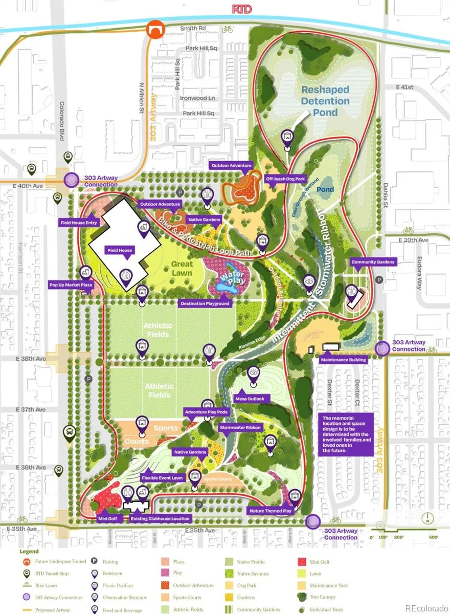 The proposed Park Hill Park development plans to bring green space and community amenities to the corridor, a meaningful signal for long-term value. (Rendering is AI-generated based on proposed plans; see supplements for details.)