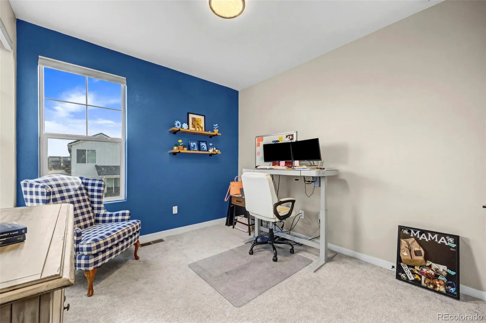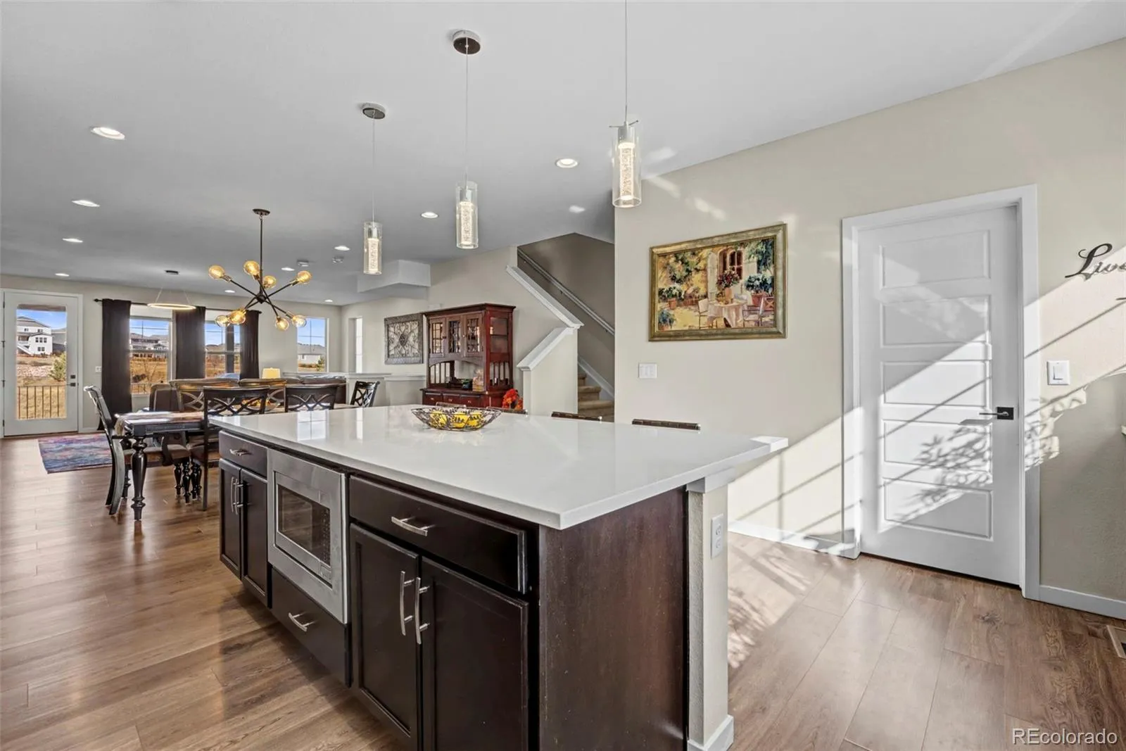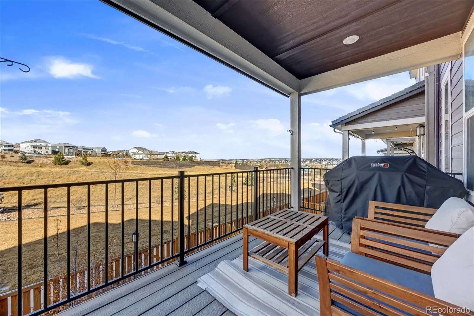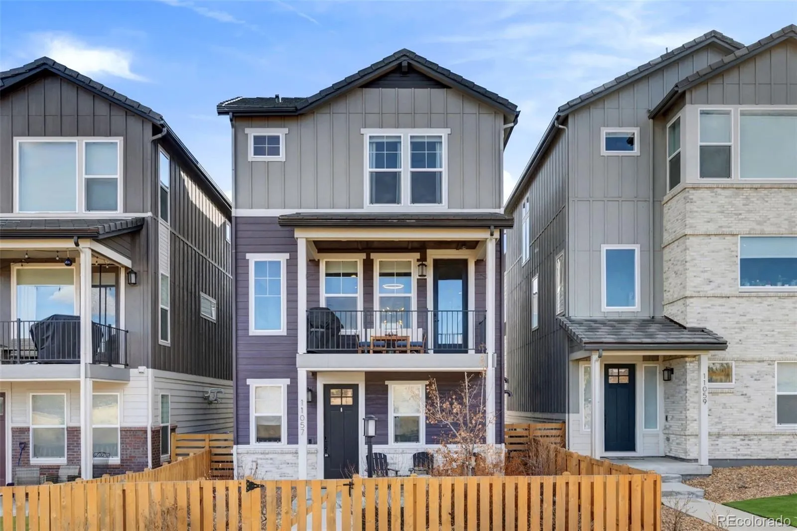 Built in 2021, this welcoming home blends modern finishes, energy efficiency, and a peaceful greenbelt setting. The open-concept main level is filled with natural light, anchored by a bright kitchen featuring quartz countertops, custom backsplash, stainless appliances, range hood, eat-at island, walk-in pantry, generous storage, and a large south-facing window. The open-concept dining area flows seamlessly with the kitchen and living space, creating an easy, connected layout for everyday meals and entertaining. An updated chandelier adds a fresh, modern focal point while complementing the home’s clean lines and natural light. The adjoining living area offers a cozy gas fireplace with stone surround and direct access to a quiet deck overlooking the greenbelt—an inviting space for morning coffee or relaxed evenings outdoors. A convenient main-floor powder room completes the level. Upstairs, the primary suite provides a spacious walk-in closet and en-suite bath with standing shower and private water closet. Laundry is thoughtfully located on the upper level for everyday ease. Two additional bedrooms and a full bath round out the upper floor. Additional highlights include energy-efficient windows, updated lighting, smart lighting controls, hardwired internet, attic and dedicated storage space, and all appliances from 2021. The three-car tandem garage includes a smart garage door system. The deck and patio face the greenbelt, offering privacy and easy access to trails and the Parker Incline. Low HOA and community amenities include parks, a dog park, pool, and event center—creating a lifestyle that feels both connected and comfortably at home.