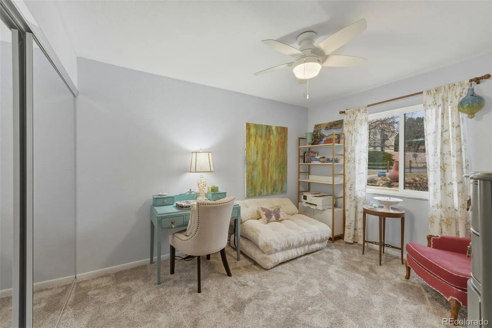 In the bedroom, new carpet provides a soft, fresh feel underfoot, while new closet doors enhance both aesthetics and functionality. The result is a comfortable, polished space designed for rest and organization.
