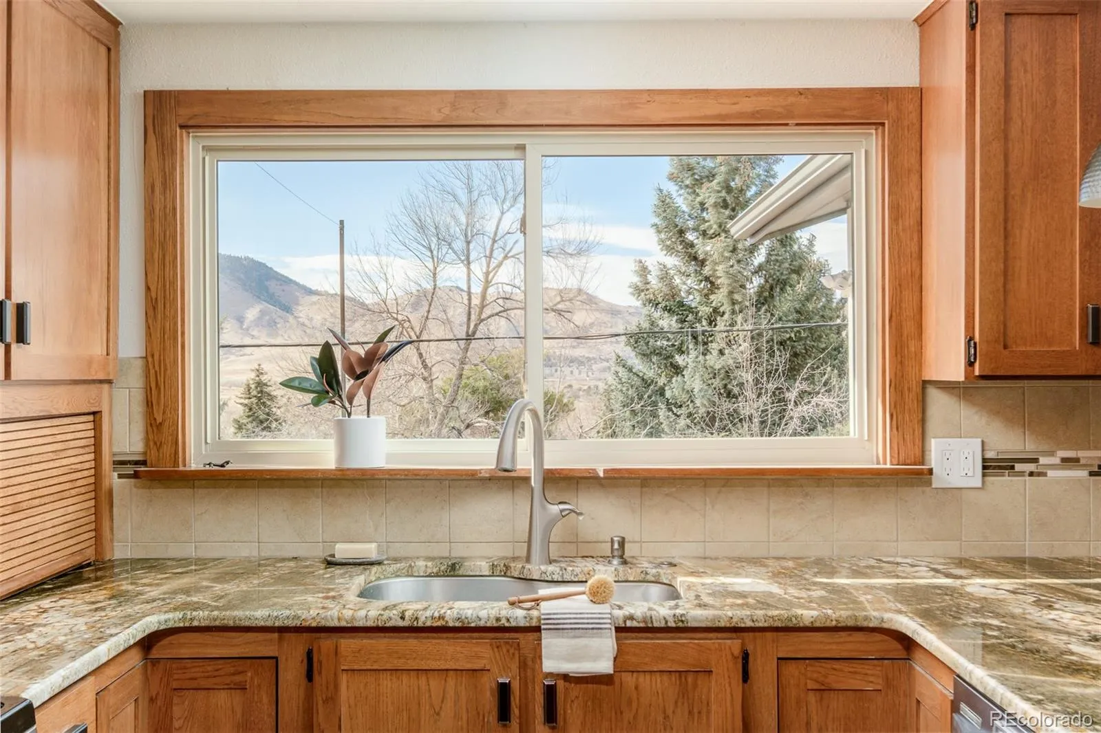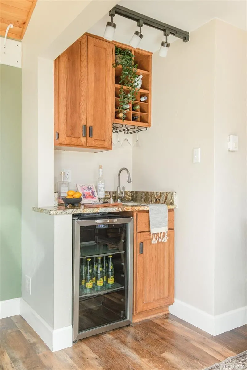 Located in the heart of Golden and just over a block to nearby trails at South Table Mountain, 1607 Secrest Street offers the perfect balance of outdoor lifestyle and comfortable living. This thoughtfully updated two level home features a flexible layout designed for the way people truly live, both inside and out. Upon entry, you are welcomed into a bright main living room with a cozy corner stove that flows seamlessly into the updated kitchen, complete with modern finishes and a built-in wet bar for effortless entertaining. A sunroom just beyond with stunning mountain views opens onto a spacious deck, creating an easy connection between indoor and outdoor spaces. The upper level includes two bedrooms, highlighted by a private primary suite with a full bath. A secondary bedroom sits adjacent to the primary, ideal for a nursery, office, or dressing room. The lower walk-out level offers three additional bedrooms, a 3/4 bath, and a generous family room anchored by an additional cozy gas stove. A spacious laundry room connects directly to a full walk-out workshop with garage door and access to the covered patio, providing exceptional storage and flexibility. Outside, the backyard features extensive professional landscaping including dedicated garden beds and a spacious shed, making it perfect for gardening, hobbies, or additional storage. An attached two car garage adds everyday convenience. With five bedrooms, multiple indoor and outdoor living areas, and immediate access to Golden’s trails and charm, as well as numerous conveniences including grocery stores, coffee shops, and restaurants, this home delivers space, versatility, and an unbeatable location.