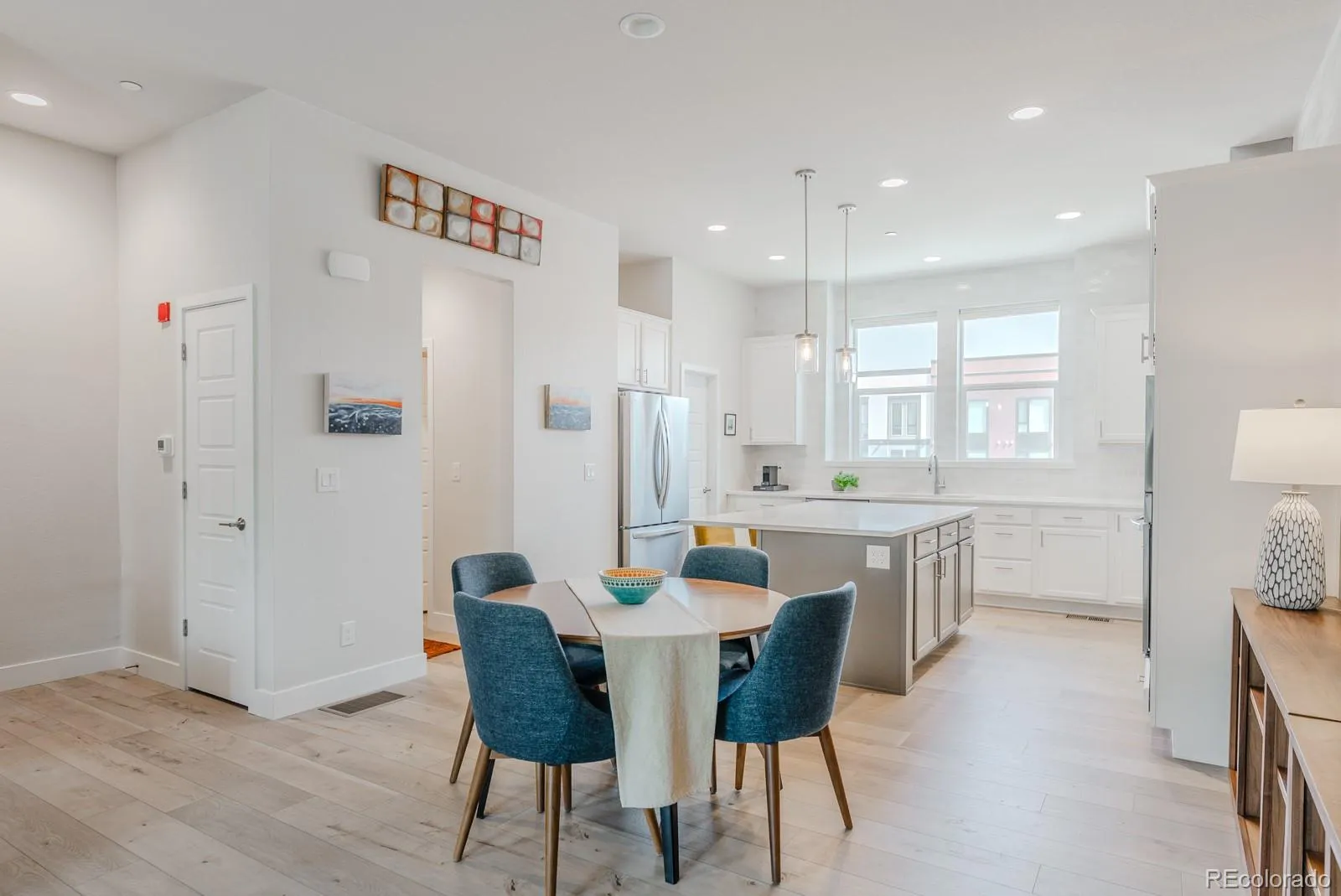 Effortlessly blending elevated design with urban sophistication, 2282 Old Rail Way offers a fresh take on Colorado living in the heart of Downtown Superior. Modern white oak style flooring flows throughout all three levels, establishing an organic foundation for an interior that is both refined and inviting. Sleek, functional and thoughtfully composed, the chef’s kitchen is a contemporary showpiece where curated materials and clean geometry meet everyday performance. Crisp white cabinetry, a contrasting island, softly veined quartz counters, premium stainless appliances and subway tile extending to the ceiling add rhythmic texture to this culinary space illuminated by expansive windows that invite natural light across every surface. The great room welcomes with an alluring linear fireplace framed in textured tile and opens to a private balcony, extending the living experience outdoors. The primary suite is an impressive sanctuary with 12ft lofted ceilings, a stack of floor to ceiling windows and a sleek sliding door that leads to an inspired bath crafted for restoration. Terrazzo flooring, a frameless glass shower dressed in tranquil spa-blue tile and a double vanity evoke boutique luxury. A secondary en-suite bedroom offers flexible use for guests or a private office while the entry-level suite lends itself to a media lounge, home gym, or client-facing workspace. Crowning it all is a show-stopping rooftop deck with panoramic Flatiron views—perfect for coffee at sunrise or evenings under the stars. Perfectly positioned just 10 minutes from Boulder and 20 from Denver, Downtown Superior offers a lifestyle few communities can rival. This vibrant neighborhood places you within walking distance from an emerging promenade of shops, acclaimed dining, the dynamic Sports Stable, convenient retail and Whole Foods. With over 40 acres of open space and miles of scenic trails, it’s a location that places daily essentials and enriching experiences right at your doorstep.