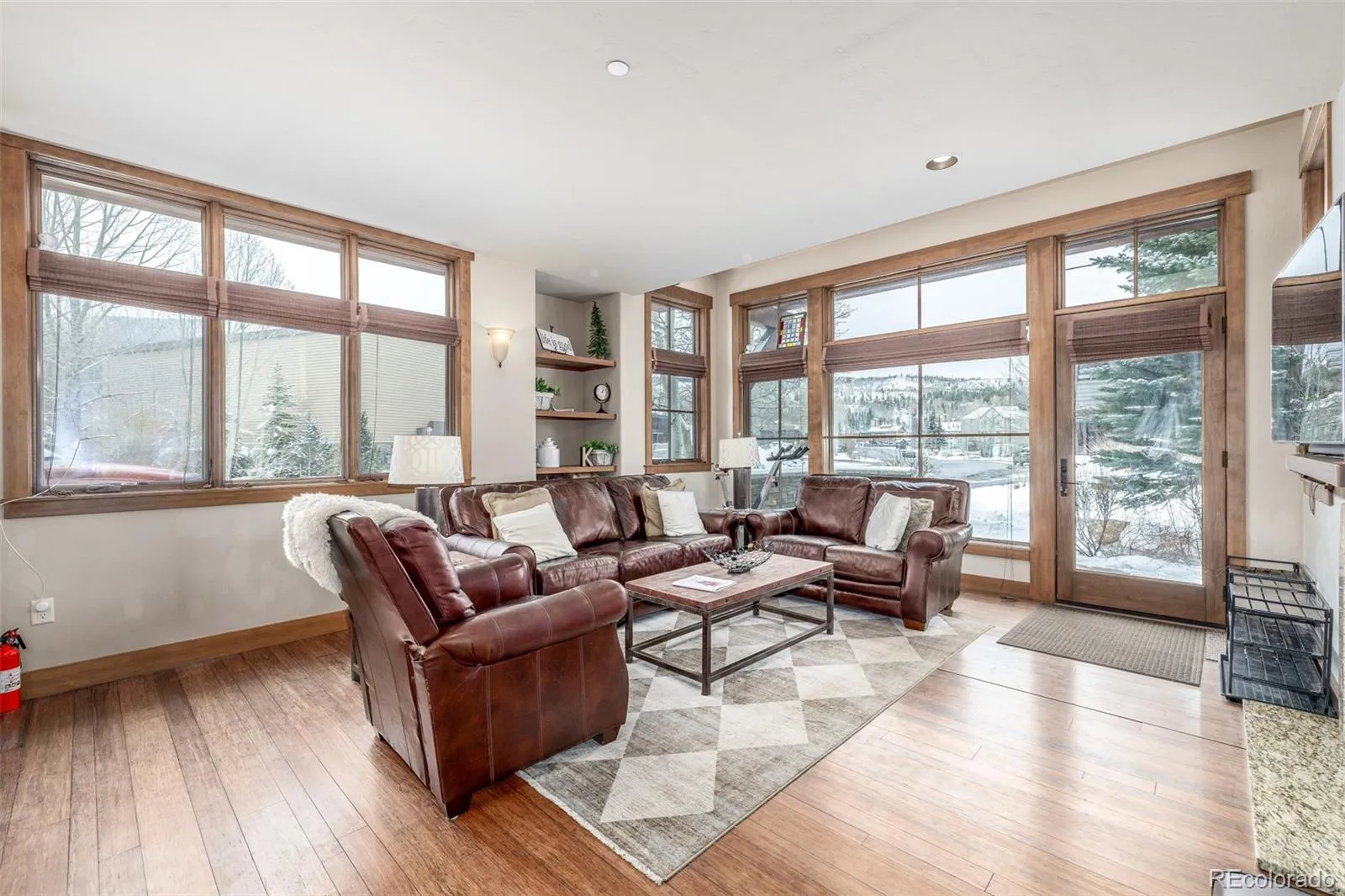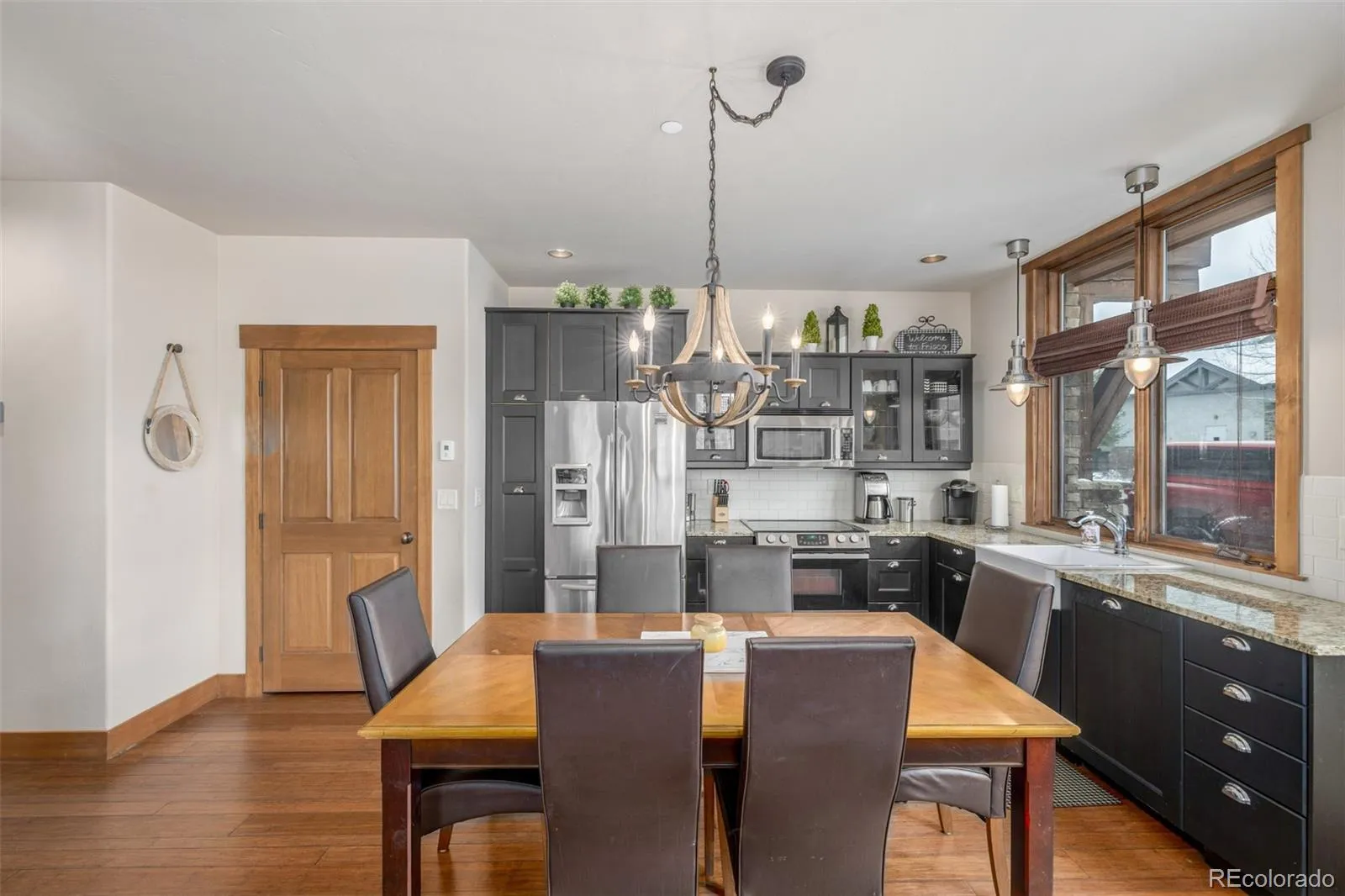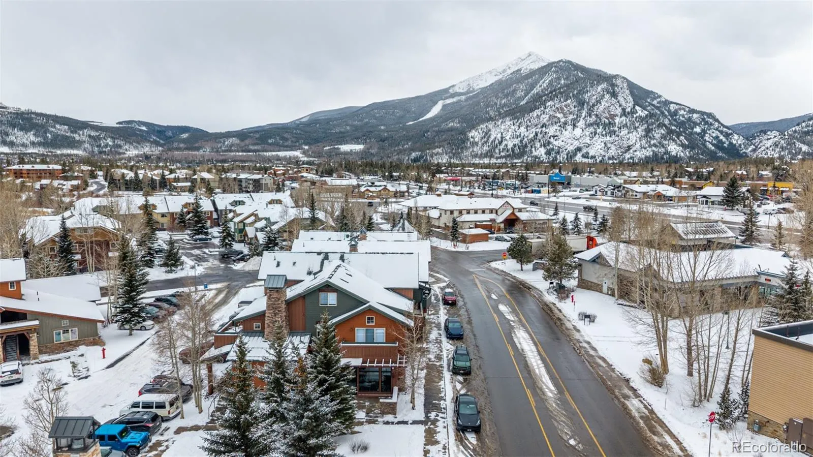 Ground level living in the heart of Frisco with effortless access, this thoughtfully maintained end-unit offers a rare combination of comfort, ease and location. Thoughtfully stewarded for 13 years and never rented, the residence reflects pride of ownership. Natural light pours through expansive sound insulating windows, creating a bright interior that is open + peaceful. Radiant in-floor heat runs through the home, delivering consistent warmth, while endless hot water adds everyday ease. Hardwood floors, refined wood trim, and a gas fireplace establish a grounded mountain aesthetic. The open concept kitchen pairs granite surfaces with modern cabinetry and efficient storage, flowing into a dining area with a rustic chandelier that honors the alpine setting. Two bedrooms offer flexibility, including a spacious main suite with ensuite bath. Dual exterior entrances allow for a potential lock-off configuration, subject to HOA guidelines. The private patio directly faces a community fountain, while landscaped grounds create a tranquil backdrop. A large heated storage locker accommodates skis, bikes, and seasonal gear, while 2 reserved parking spaces enhance convenience. HOA dues include water, gas for radiant heat, and Comcast TV service, with strong financial management + no special assessments during current ownership. Dual hot tubs, clubhouse, maintained grounds, snow removal, and exterior upkeep ensure low-maintenance ownership. Located on a quiet road, the home offers direct access to the Summit County bike paths, a short walk to Dillon Reservoir, and immediate connection to the Summit Stage bus line. Whole Foods, Natural Grocers, Safeway, local breweries, restaurants, and Main Street are within easy reach, while Breckenridge, Keystone, Copper, Vail, and Dillon are moments away. A refined mountain residence offering central Summit County access, year round recreation, and uncomplicated ownership in one of Colorado’s most desirable alpine communities.