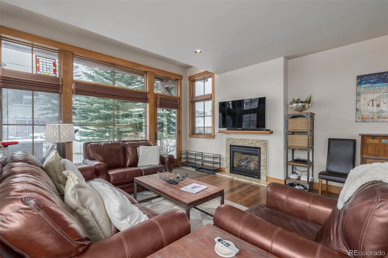 Incredibly rare ground level living in the heart of Frisco with effortless access, this thoughtfully maintained end-unit offers a rare combination of comfort, ease and location. Thoughtfully stewarded for 12 years and never rented, the residence reflects pride of ownership. Natural light pours through expansive sound insulating windows, creating a bright interior that is open + peaceful. Radiant in-floor heat runs through the home, delivering consistent warmth, while endless hot water adds everyday ease. Hardwood floors, refined wood trim, and a gas fireplace establish a grounded mountain aesthetic. The open concept kitchen pairs granite surfaces with modern cabinetry and efficient storage, flowing into a dining area with a rustic chandelier that honors the alpine setting. Two bedrooms offer flexibility, including a spacious main suite with ensuite bath. Dual exterior entrances allow for a potential lock-off configuration, subject to HOA guidelines. The private patio directly faces a community fountain, while landscaped grounds create a tranquil backdrop. This home boasts a large heated storage locker accommodates skis, bikes, and seasonal gear. HOA dues include water, gas for radiant heat, and Comcast TV service, with strong financial management + no special assessments during current ownership. Dual hot tubs, clubhouse, maintained grounds, snow removal, and exterior upkeep ensure low-maintenance ownership. Located on a quiet road, the home offers direct access to the Summit County bike paths, a short walk to Dillon Reservoir, and immediate connection to the Summit Stage bus line. Whole Foods, Natural Grocers, Safeway, local breweries, restaurants, and Main Street are within easy reach, while Breckenridge, Keystone, Copper, Vail, and Dillon are moments away. A refined mountain residence offering central Summit County access, year round recreation, and uncomplicated ownership in one of Colorado’s most desirable alpine communities.
