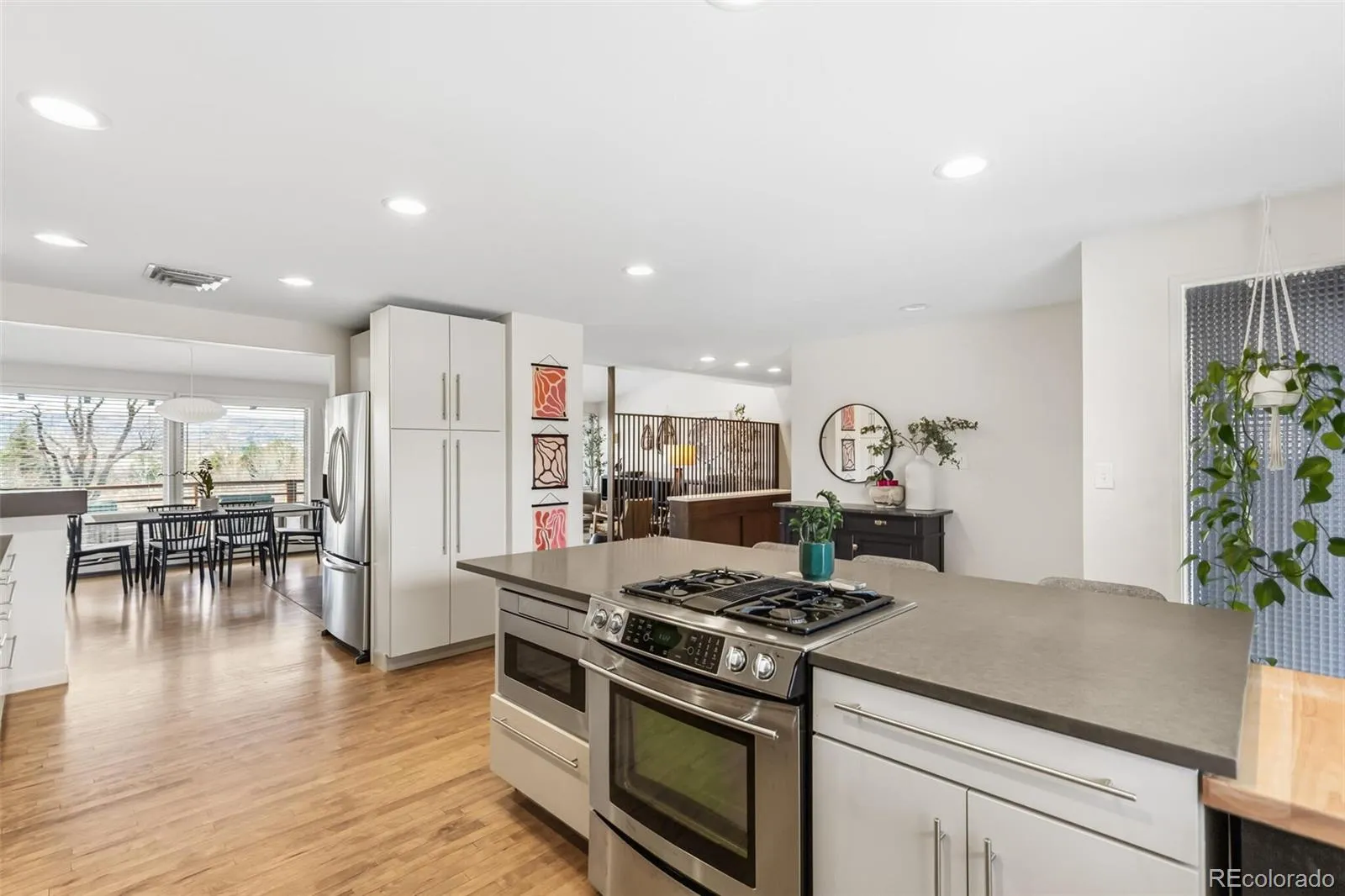 Designer remodeled Mid-Century modern with gorgeous finishes, and tons of gorgeous interior and exterior living spaces! This beauty is built on a vast, fully landscaped 12,589 sf lot! The piece de resistance are the Incredible Mountain Views from both upper and lower levels! Original Mid-Century features include wooden slat wall, original planter/cupboard, and wooden decor along the hallway. Original Front Door! Two original wood burning fireplaces and light sconces! Nestled in N. Miller Heights: a quiet, rare Mid-Century Modern development showcasing fabulous, architectural period homes, accented by mature tree-lined streets. Offering Five bedrooms: (one oversized large music studio can be used as a bedroom, office, art/yoga studio, work out space…) Two Full baths and Beautiful Primary en suite 3/4 bath with walk-in shower. Kitchen is a chef’s dream with a huge cooking island, lots of counter space and an abundance of upscale cabinetry storage! Newer windows and sliding glass doors throughout! Upper deck off of main living area and Primary suite! Walk out to your beautiful covered lower deck for outside entertaining or relaxing, completely landscaped with sprinklers and a fully fenced rear yard. Freshly re-painted throughout! Gleaming hard-wood floors. Serviced and cleaned boiler system works like a charm and 2 swamp coolers! Nothing is better for our dry climate and skin than water heating and cooling – AND it’s super environmental! Original carport and garage add to the unique architecture. Close to shopping, restaurants, grocers, lightrail and super easy access to Rt. 6 for trips to the mountains. Showings start Friday. 2/27/26.