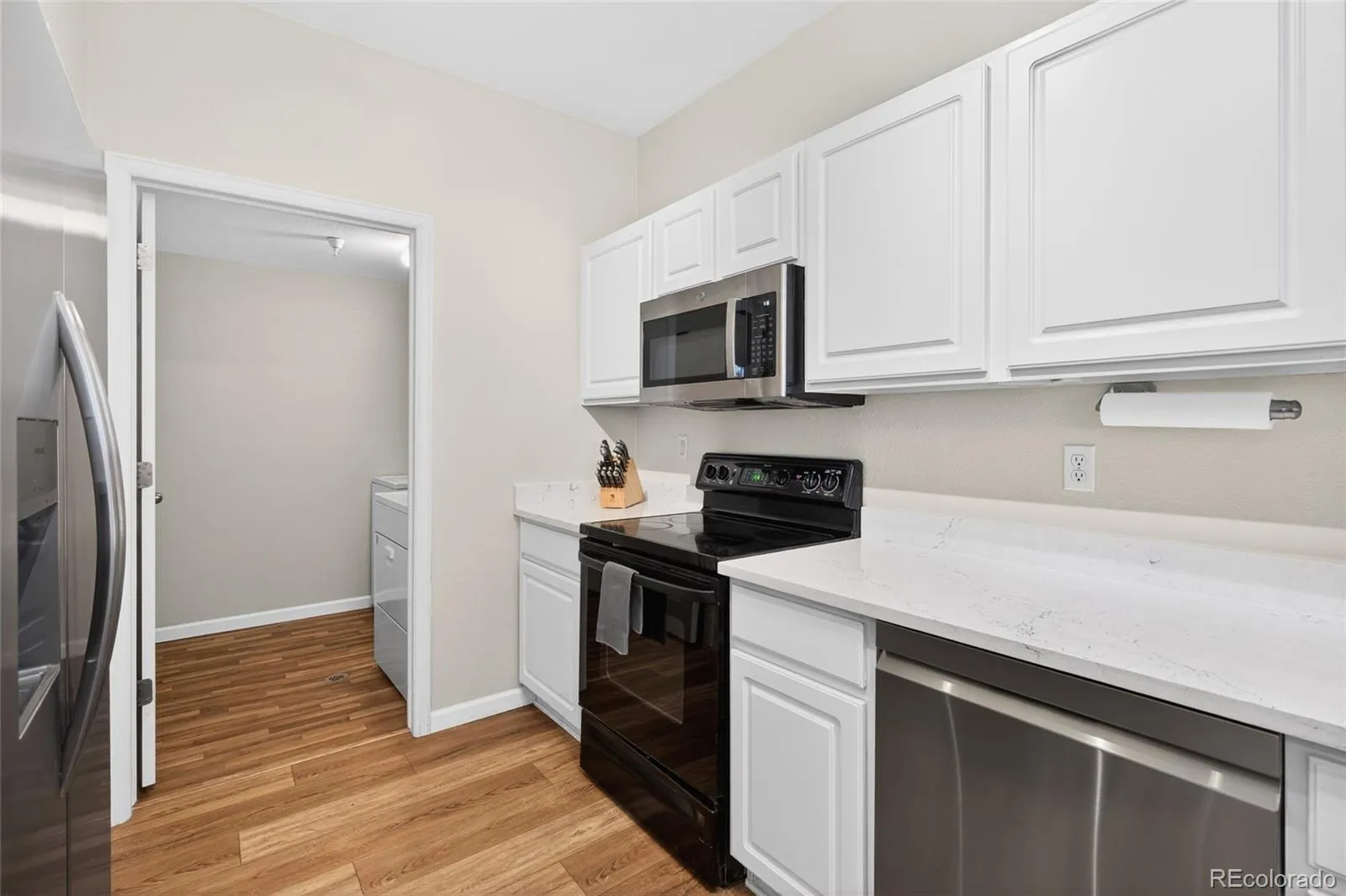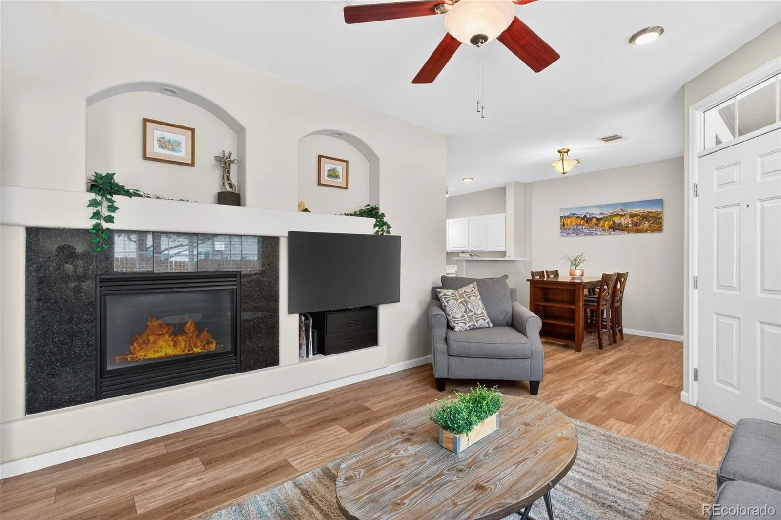 10K Price cut … MUST SEE!!! This beautifully updated, light-drenched, move-in ready end-unit home offers the perfect blend of style, comfort, and everyday ease. Tucked at the end of the complex with a private entrance and ground-level living, it provides a sense of privacy and convenience that’s hard to find. Inside, you’ll find a thoughtfully updated and well-appointed space with fresh interior paint, updated lighting, and two fully renovated bathrooms featuring modern finishes, new flooring, and stylish vanities. The kitchen has been tastefully upgraded with quartz countertops, an undermount sink, updated faucet, and newer appliances, creating a clean and functional space that flows effortlessly into the main living area. New luxury vinyl plank flooring, new carpet in the bedrooms, and updated baseboards add to the home’s polished feel, while a cozy gas fireplace creates the perfect spot to unwind at the end of the day. Major system updates, including a newer furnace, A/C, and water heater, offer peace of mind for years to come. The home also includes a private garage with excellent storage with built-in shelving and bike storage, plus an additional deeded parking space. Enjoy low-maintenance living in a peaceful, well-maintained community with a pool just a short walk away—ideal for relaxing summer days. All of this in a central location on the Denver/Aurora border within the highly regarded Cherry Creek School District, with easy access to everyday essentials like Costco, Safeway, and Lowe’s, as well as dining, I-25, I-225, the Denver Tech Center, and Cherry Creek. *** See Supplements or contact the Listing Agent for a detailed list of upgrades and improvements. *** This property qualifies for a community lending loan with a lower interest rate than a traditional loan. Please call our preferred lender Matt Hanson 303.300.8601 for more information.
