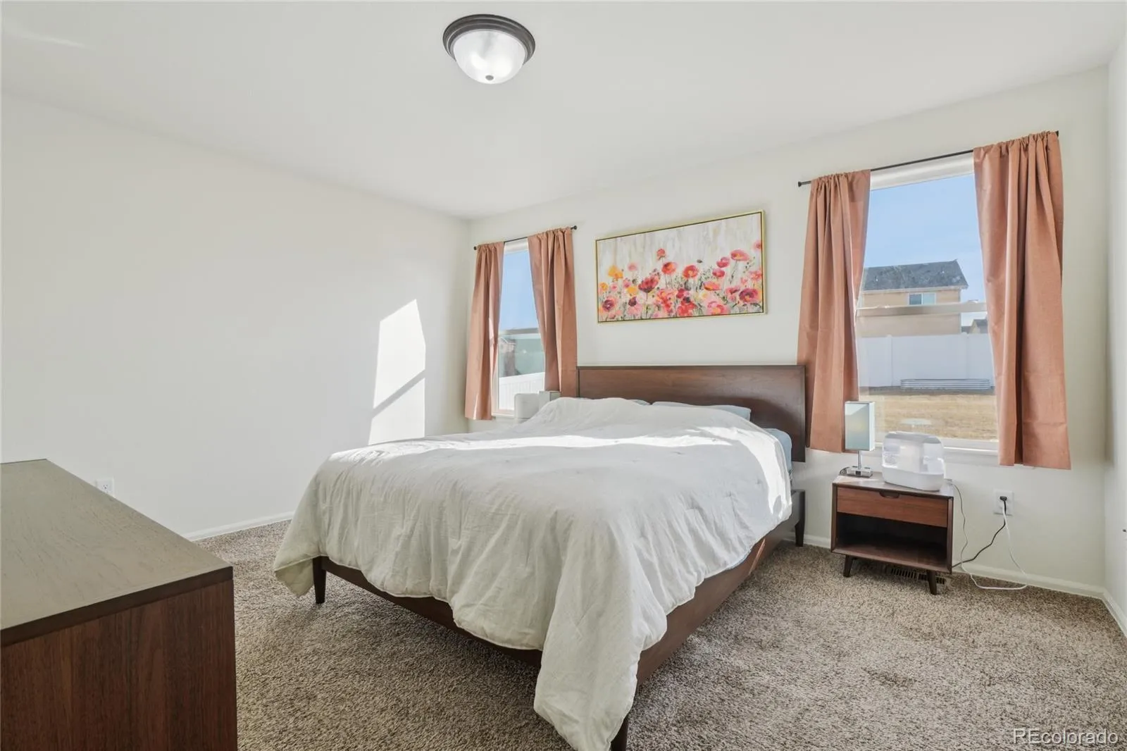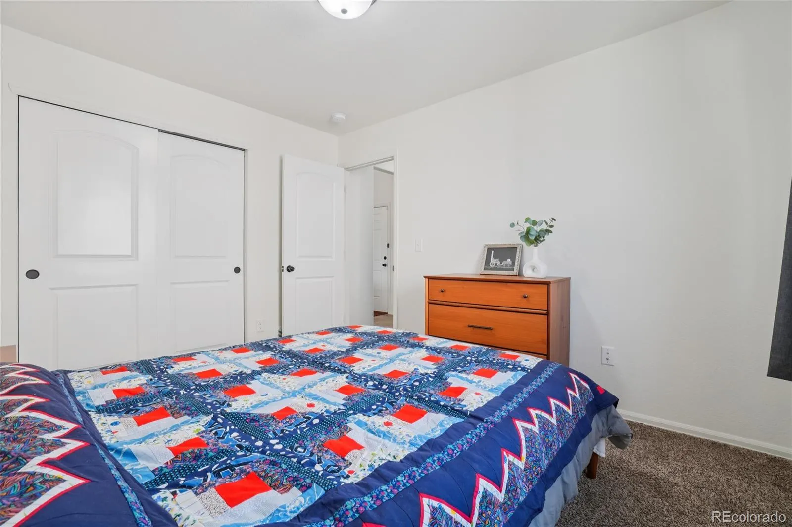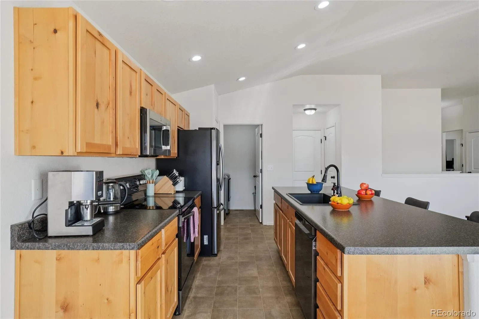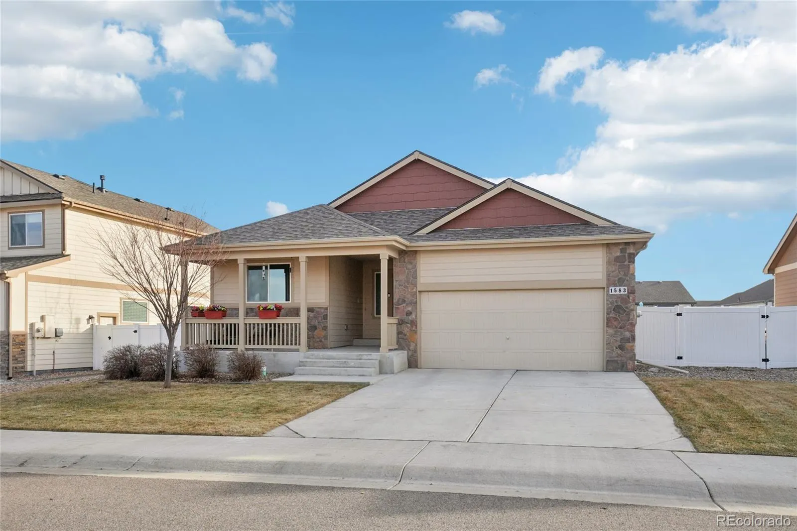 This bright and cheerful ranch-style home is perfectly situated in the desirable Severance Shores community, offering true move-in-ready comfort in a quiet, friendly neighborhood. With open space and a park just across the way, the wide, covered, shaded front porch provides the perfect place to relax with seating and tables while enjoying the peaceful surroundings. Inside, the efficient one-level layout is filled with natural light and designed for easy, low-maintenance living. The open living room, kitchen, and dining area create a welcoming flow ideal for both everyday life and entertaining. The kitchen and dining space feature impressive 10-foot vaulted ceilings, enhancing the airy feel. The well-appointed kitchen offers ample knotty wood cabinetry, upgraded Samsung black stainless steel appliances, a striking black sink and faucet, and an expansive center eat-in island that anchors the space beautifully. Three generously sized bedrooms provide comfortable accommodations, with the primary suite thoughtfully positioned opposite the guest bedrooms for added privacy. The primary retreat includes a private en-suite bath and a spacious walk-in closet. Full unfinished basement ready for storage or future living space. The large south-facing backyard is a true highlight, designed for both relaxation and sustainable living. Enjoy a spacious patio, new raised garden beds, and a stone firepit with seating area ready for spring evenings under the stars. Eight raised beds are already planted with native, drought-tolerant medicinal herbs and fruit shrubs such as elderberry and redcurrant, alongside perennials, flowers, and herbs, with plenty of room to grow your own vegetables. Additional updates include a new roof installed in 2022 and fresh interior paint. Just minutes away, you’ll find the nearby community park and Windsor Reservoir, complete with walking paths, horseshoe pits, and stunning mountain views. Welcome home!