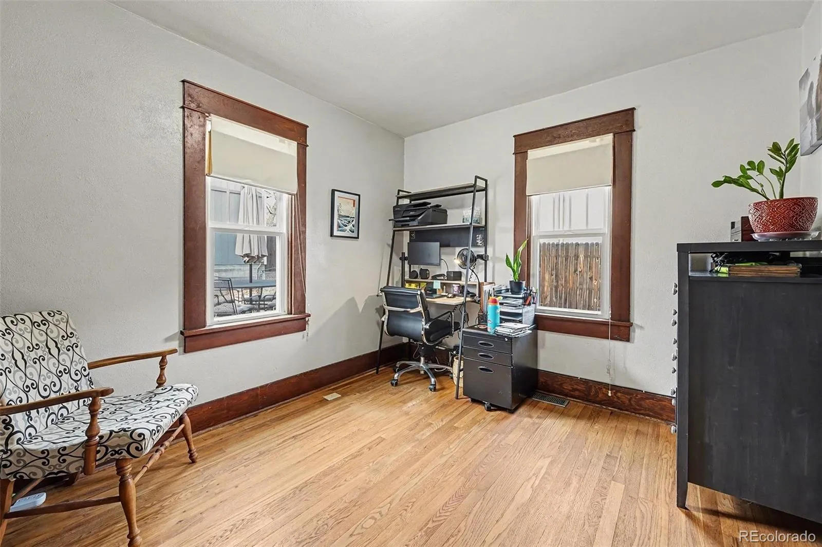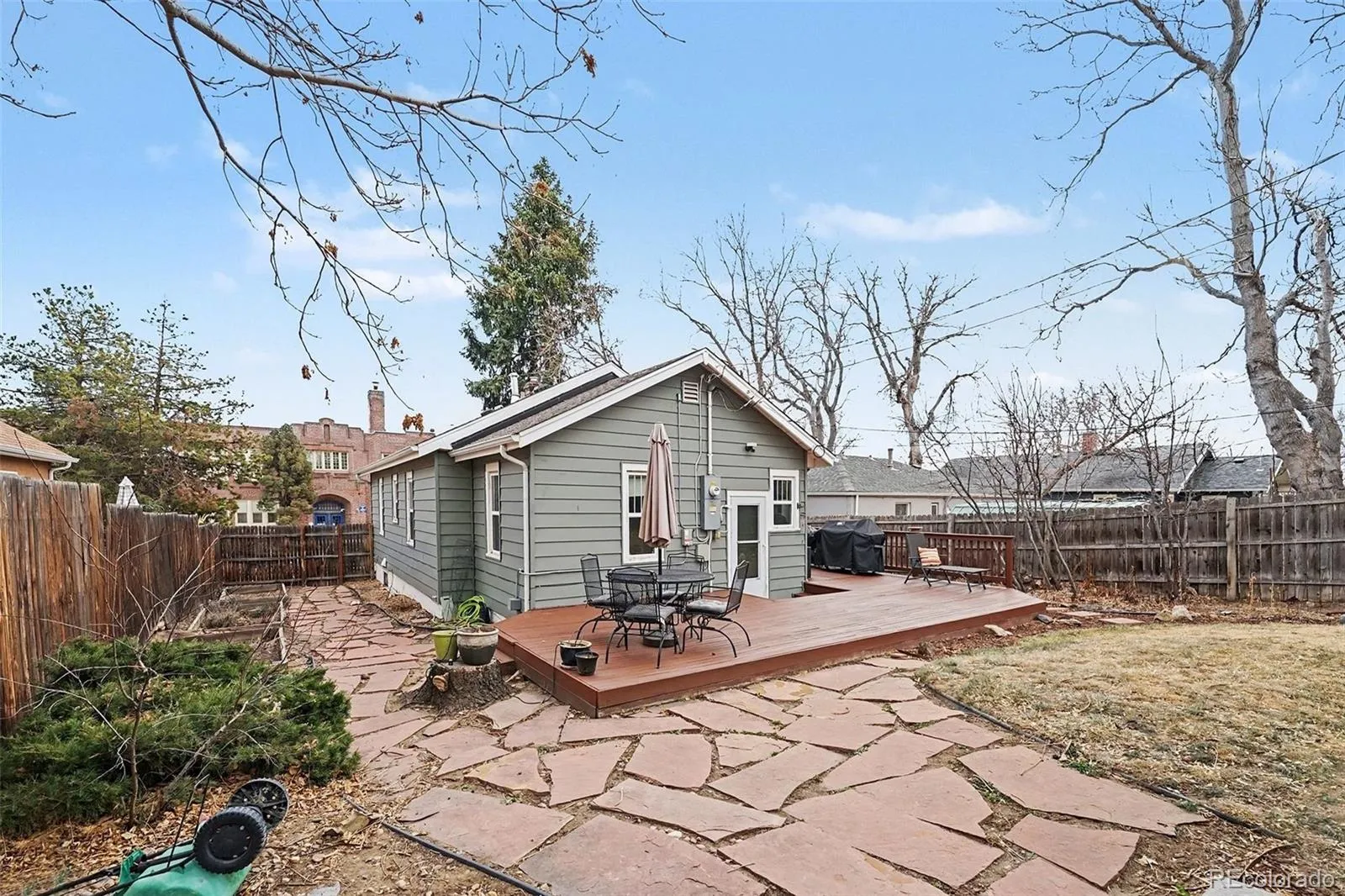 Welcome to this beautifully updated bungalow in the heart of East Berkeley, where timeless classic charm meets thoughtful modern updates. From the moment you step inside, you’ll appreciate the rich hardwood floors and inviting character details that make this home truly special. The updated bathroom blends vintage style with fresh finishes, featuring newer tile, beadboard accents, and a classic clawfoot tub. The remodeled kitchen is both stylish and functional, offering updated cabinetry, quartz countertops, a farmhouse sink, custom backsplash, and stainless-steel appliances, perfect for everyday living and entertaining. A rare find for the area, this home includes a spacious basement, ideal for storage, hobbies, or a workshop along with a dedicated laundry area complete with newer washer and dryer included. Step outside to your private backyard retreat. The fully fenced yard showcases a freshly refinished deck, paver patio, and raised garden beds, perfect for relaxing or hosting summer gatherings. The detached two-car garage (built in 2013) adds convenience and valuable off-street parking. The xeriscaped front yard offers low-maintenance curb appeal. Major exterior updates provide peace of mind, including newer windows, roof, and durable steel low-maintenance siding. The owned solar system is a tremendous bonus, offering long-term energy savings for the next owner. Located just minutes from Downtown Denver, LoHi, Highlands, Berkeley, and Sunnyside, you’ll enjoy easy access to some of Denver’s best dining, shopping, nightlife, and entertainment. Close proximity to Regis University, parks, and neighborhood amenities make this location truly unbeatable.
