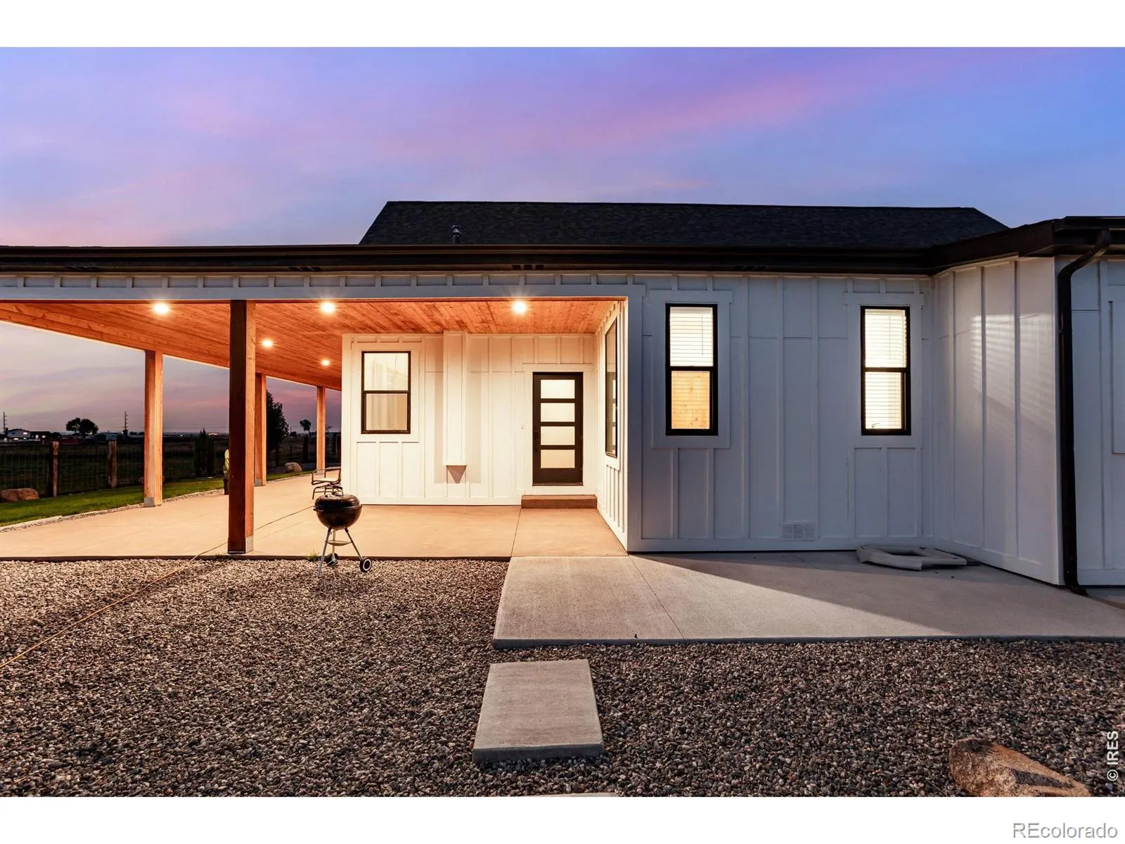 Tucked away behind a private gate, on 6.15 serene acres zoned Agricultural/Residential, this custom home offers the rare blend of rural privacy and refined living-framed by spectacular Rocky Mountain views. The exterior welcomes you with custom railroad tie and hog wire fencing, two expansive covered front patios with warm tongue-and-groove pine ceilings, and a massive backyard covered patio with sand-coated concrete. A well pump and water hydrant sit conveniently on the north side, supported by a full sprinkler and drip system. Step inside to a spacious foyer with tile flooring, coat closet, and rich 3-panel Alder doors with brushed bronze accents. The home’s hypoallergenic design features solid hardwood floors and tile throughout, illuminated by double-pane energy-efficient windows. The open kitchen, ideal for both daily living and entertaining, boasts quartz countertops, a waterfall-edged center island, dual barn-doored pantries, soft-close drawers, stainless appliances-including a gas range with flat grill-and direct front patio access. The family room’s vaulted ceilings and King pellet stove set the stage for mountain-view relaxation. The primary suite offers backyard access, dual walk-in closets, and a spa-inspired bath with quartz, overhead and wand shower, and dual lifted vanities. Additional main-level highlights include two hardwood-floored bedrooms (one with stunning views), a Jack-and-Jill bath, a corner office, guest half bath, and spacious laundry with washer/dryer included. A grand iron-railed staircase leads to a vaulted loft, 3/4 bath, and private guest bedroom with French doors. Mechanical excellence includes a Navien tankless water heater, Rheem water softener/filtration, Goodman A/C, and a 1,000-gallon owned propane tank. The oversized 1,094-sq-ft garage features a standard double door and a 12′ RV door-ready for all your Colorado adventures.E-mail brokers for additional information or to schedule a showing.