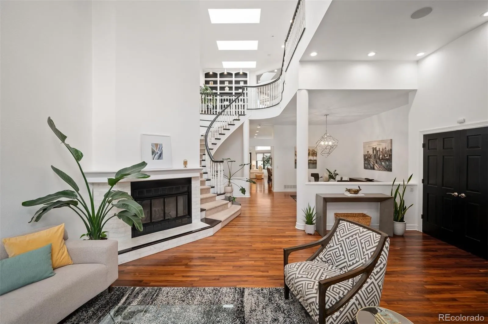 Rare opportunity to own one of the most natural light-filled townhomes on a premier North Cherry Creek block just steps from Denver’s best dining, shopping, and fitness studios. This expansive west-facing executive residence blends timeless architecture with over $220,000 in curated upgrades, offering refined lock-and-leave living in one of Denver’s most walkable neighborhoods. The dramatic central staircase and rich walnut floors anchor the main level, designed for both elevated entertaining and everyday comfort. The chef’s kitchen features Sub-Zero, Wolf, Bosch appliances, dual microwave and wall oven, Silestone surfaces, and floor-to-ceiling cabinetry seamlessly flowing into a spacious family room with gas fireplace, adjacent 4-season atrium and interior courtyard.