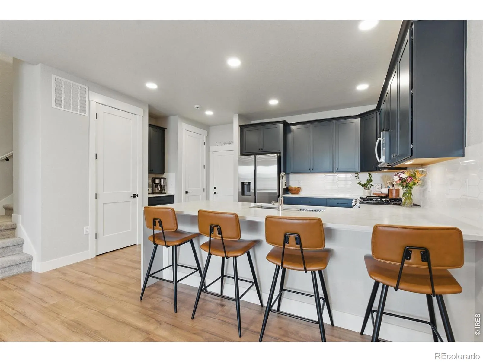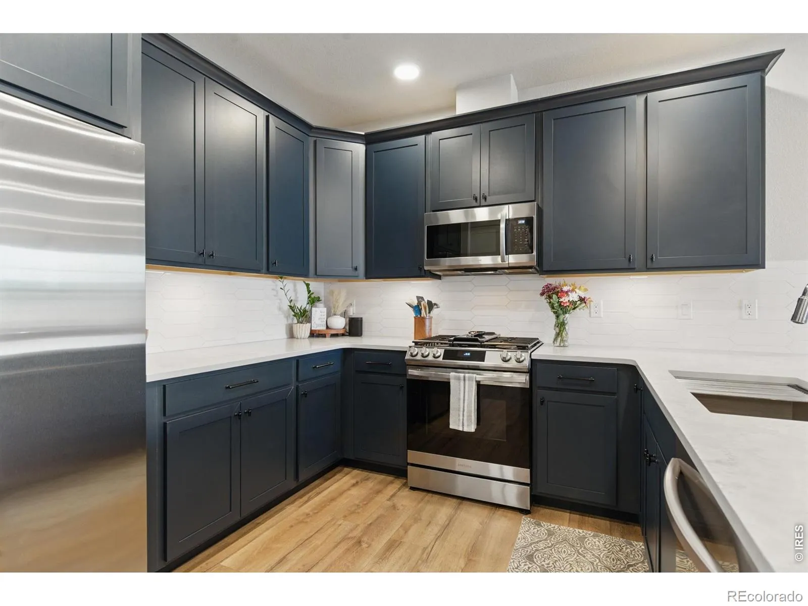 Views, Views, Views! Up to a $5,000 preferred lender incentive! Better Than New in West Loveland and priced to sell. This upgraded Rainier plan offers 3 bedrooms, 3 baths, and an open layout filled with natural light. Located in the westernmost part of the community, it faces future parkland for forever mountain views and added privacy. Interior upgrades include quartz countertops, full tile backsplash, tile bathroom floors, painted cabinetry, LVP flooring, central A/C, tankless water heater, window blinds, and stainless steel appliances. Enjoy a spacious master suite with mountain views, built-in entry bench, and radon system. The home also features an oversized 2-car garage, fenced in front yard, full unfinished basement with 9′ walls, and a fenced front yard. Community amenities include a dog park, playground, and scenic greenbelts. Conveniently close to trails, open space, shopping, and routes to Fort Collins and downtown Loveland.