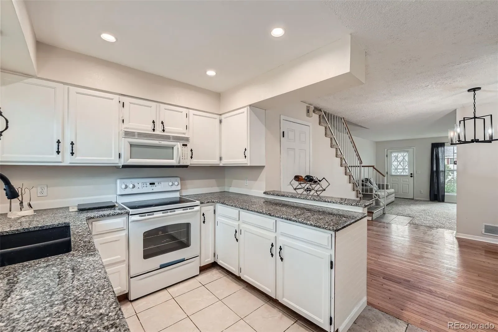 you home. The cozy dining area and kitchen with new granite countertops makes entertaining a breeze! Upstairs you’ll find