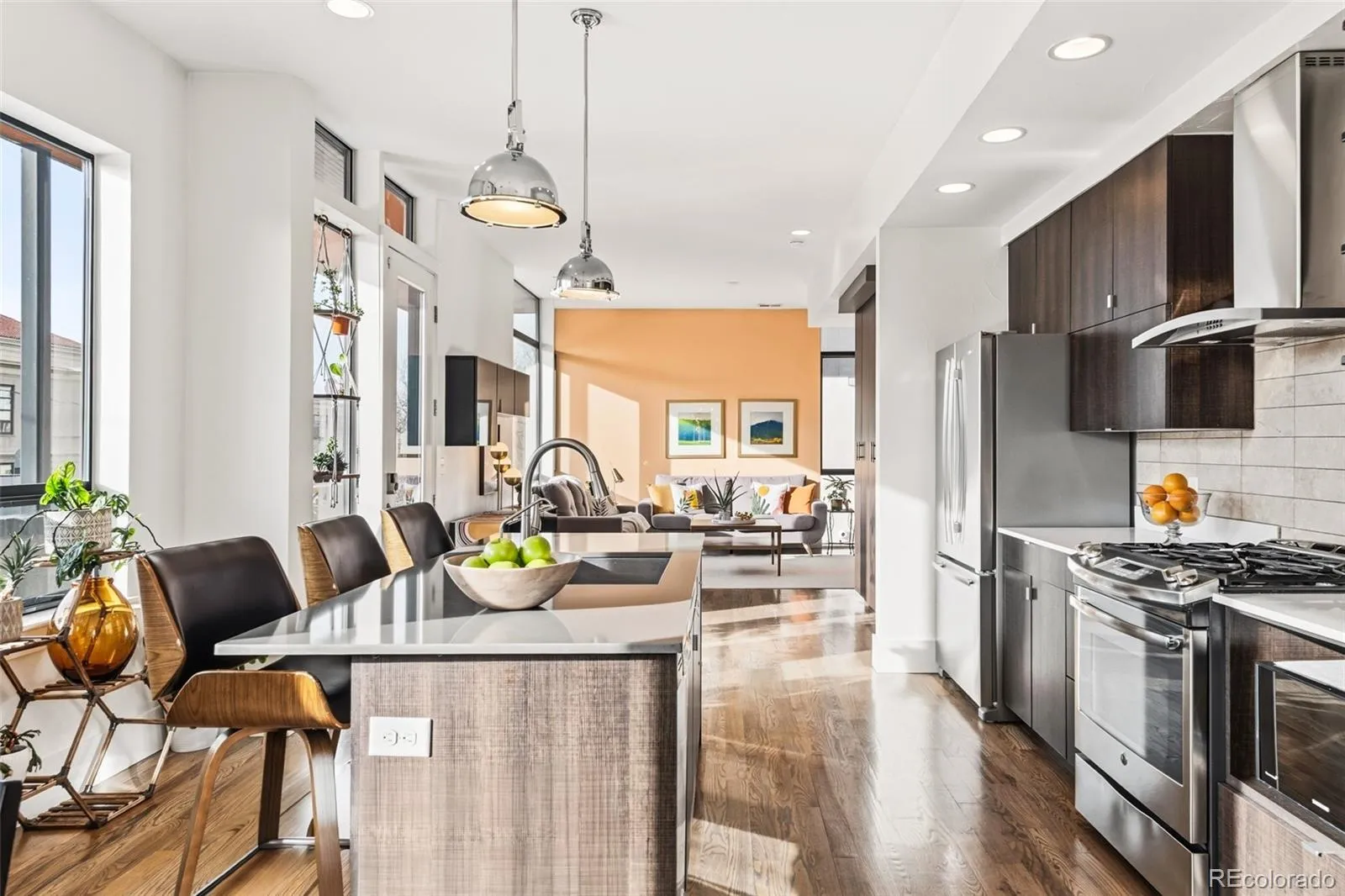 Skyline panoramas and rental income potential converge in this striking Capitol Hill townhome. Offering a functional floorplan, this architectural end unit delivers the ultimate Denver lifestyle with proximity to dining and entertainment. Light-filled interiors showcase lofty ceilings, expansive windows and beautiful hardwood flooring throughout. The open-concept main level features a stylish kitchen with sleek countertops, a generous island, stainless steel appliances and abundant cabinetry. The primary suite is a true retreat, complete with floor-to-ceiling windows and breathtaking mountain and city views. Each bedroom includes an en-suite bath with modern finishes. Outdoor living shines with a private rooftop deck and a covered patio off the main floor — perfect for morning coffee or evening gatherings framed by picturesque views. A lock-off lower level with a separate entry and a large, fenced patio boasts a strong short-term rental history, generating approximately $30K annually. This property also qualifies for a 1.75% credit from the bank up to 7K. Contact agent for details!