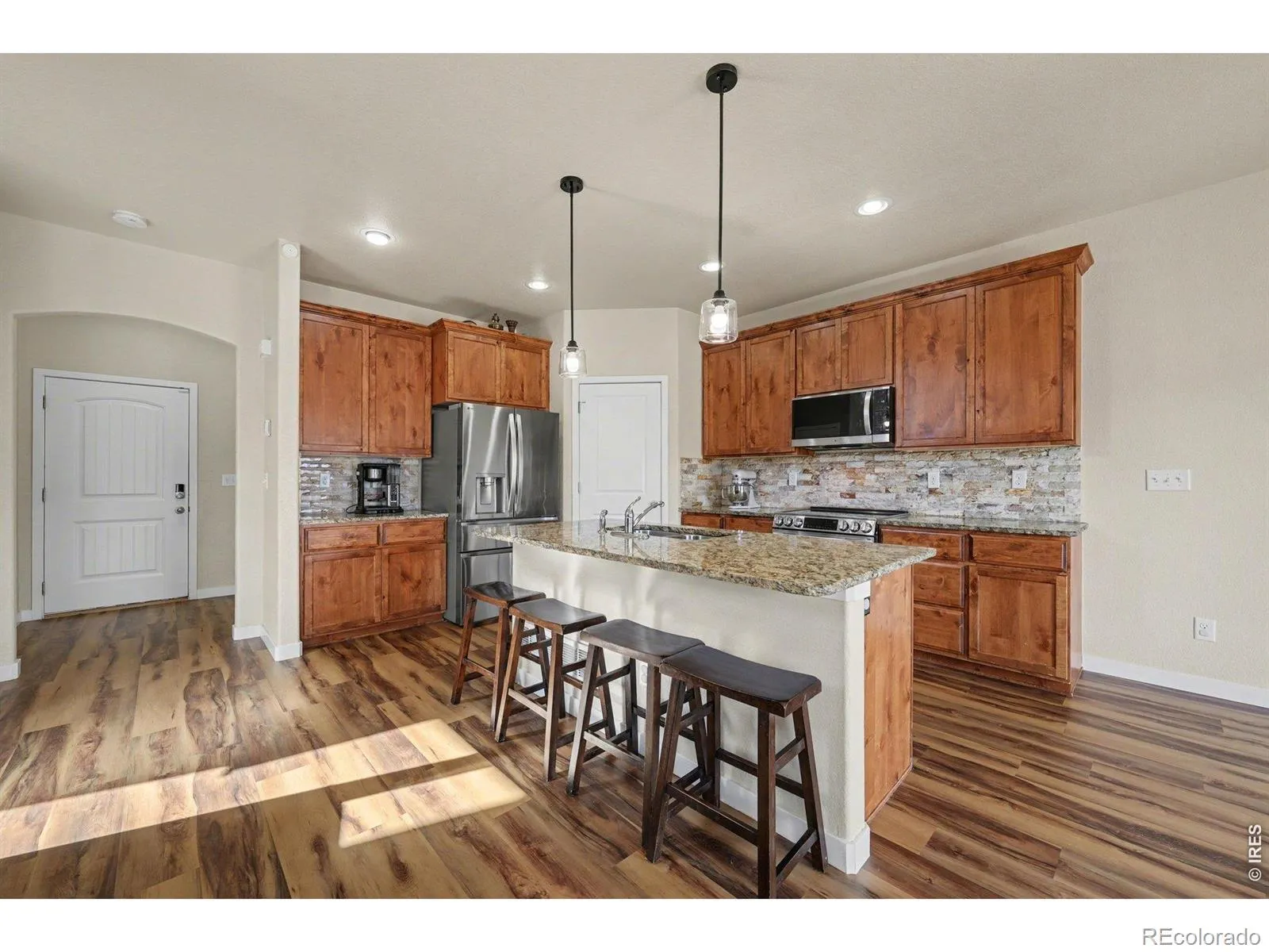 ***SOLAR OWNDED, New class 4 shingles roof, fresh exterior paint, new main level flooring, new stainless steel kitchen appliances*** Welcome Home! This beautiful 4-bedroom, 4-bath home with a 3 car tandem garage, features a spacious open floor plan designed for comfortable living and entertaining. The heart of the home offers a stunning custom backsplash, ample counter space, and seamless flow into the living and dining areas. The fully finished basement provides additional living space complete with a stylish dry bar – perfect for hosting guests, movie nights, or game days. Upstairs laundry adds everyday convenience. Step outside to a generously sized lot featuring a garden area, dog run, and large storage shed – ideal for outdoor living and organization. Located just steps from a neighborhood park with multiple playgrounds, volleyball and basketball courts, you’ll enjoy both recreation and community right outside your door. Plus, take in beautiful mountain views that provide a stunning backdrop year-round.