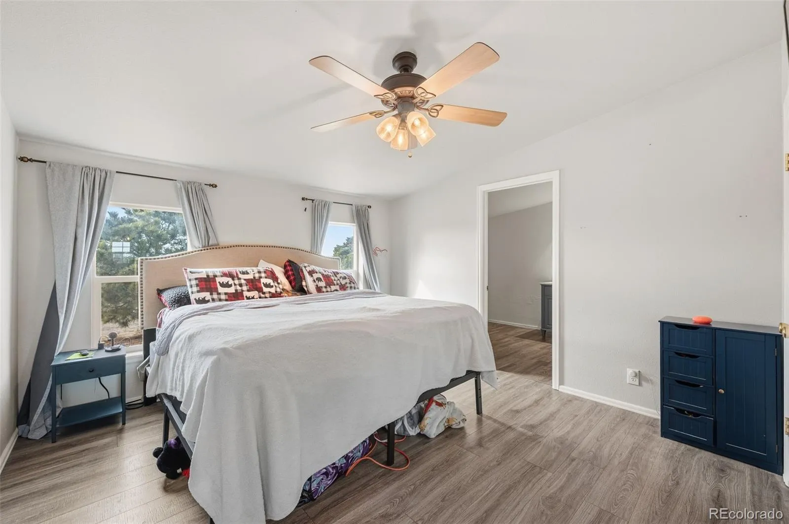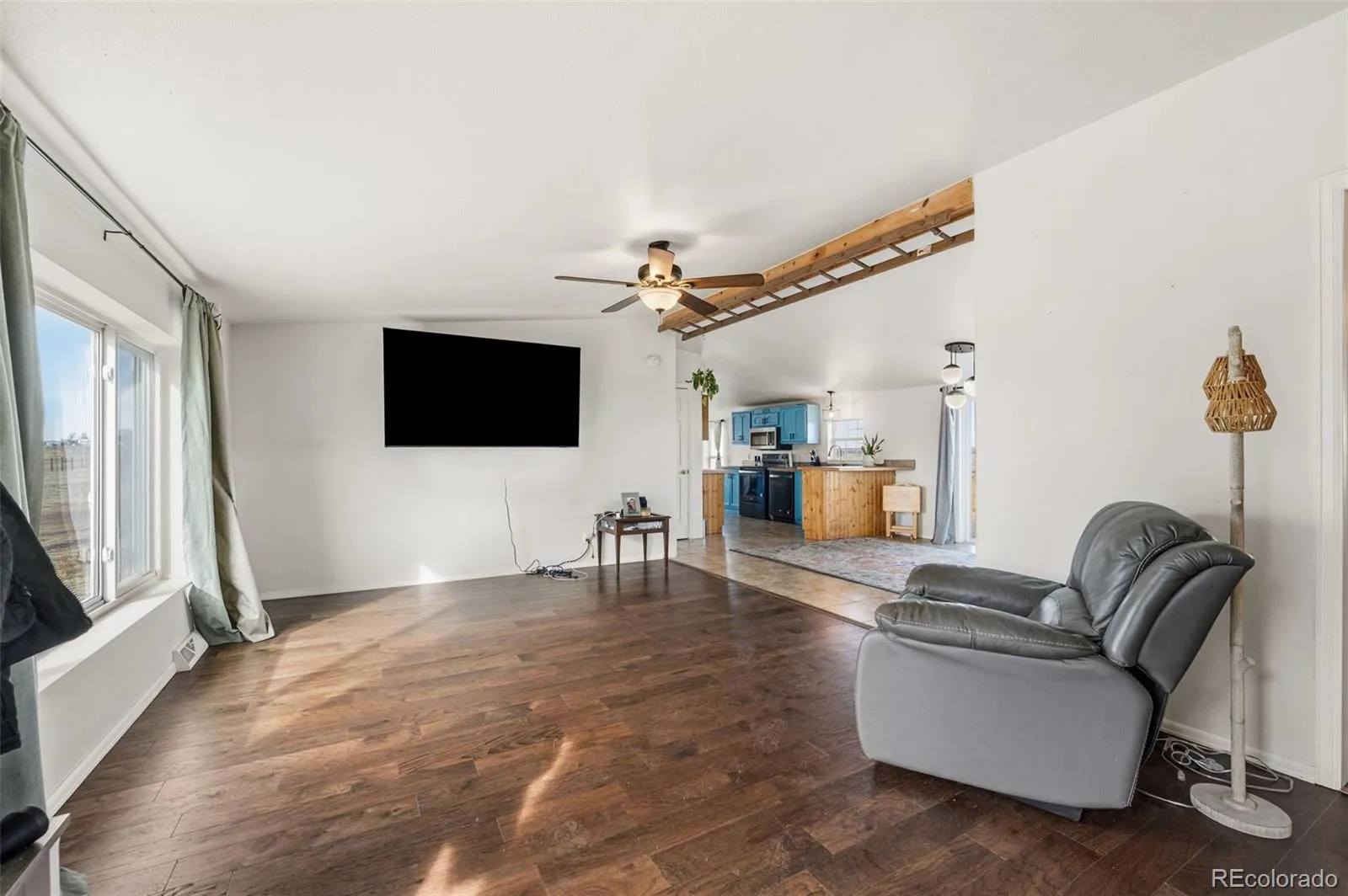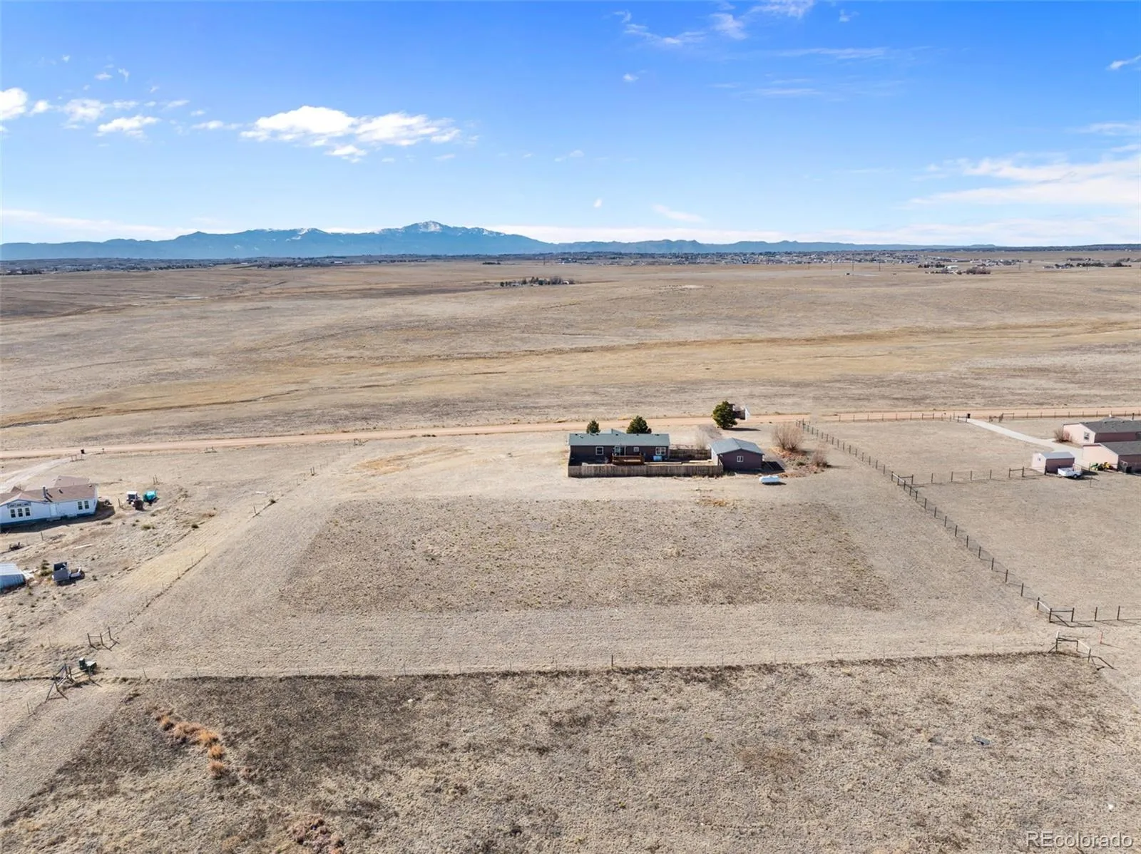 Colorado skies, wide-open space, and breathtaking views of America’s Mountain define this inviting 4-bedroom, 2-bath ranch home. Situated on 2.5 acres with just over 1,500 square feet of living space, the home is ideally placed so the front windows capture a picture-perfect view of Pikes Peak, creating a breathtaking mountain backdrop to enjoy each day. Inside, the open layout feels bright and comfortable, with tall dining room windows that fill the space with natural light. Newer laminate flooring flows through the main living areas, while the kitchen features ceramic tile flooring and a clean, well-maintained appliance package that complements the space. A wood accent wall adds warmth and personality, and the Whirlpool washer and dryer are included for everyday ease. Each bedroom captures its own view of the surrounding landscape, creating a peaceful atmosphere throughout. Outdoors, the full stucco exterior pairs with recently built front and back decks — ideal for soaking in the views or enjoying quiet evenings. A 6-foot privacy fence provides flexibility for animals or added privacy, while still embracing the open feel of the acreage. With convenient access to Falcon, Schriever, and Peterson Air Force Bases, as well as Colorado Springs, this home offers a comfortable blend of rural charm and a practical location. If you’ve been searching for space, views, and a true Colorado setting, this home is ready to welcome you.
