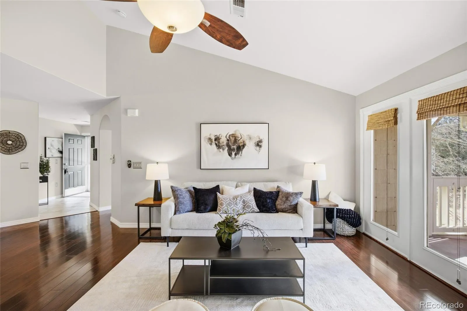 Welcome Home! This beautifully updated 2-bedroom, 2-bath condo offers hardwood flooring throughout, fresh interior paint, and a bright open-concept layout. The spacious kitchen features generous cabinetry and a large pantry, opening to a sun-filled, vaulted living area with a cozy gas fireplace and a nice south facing patio area.