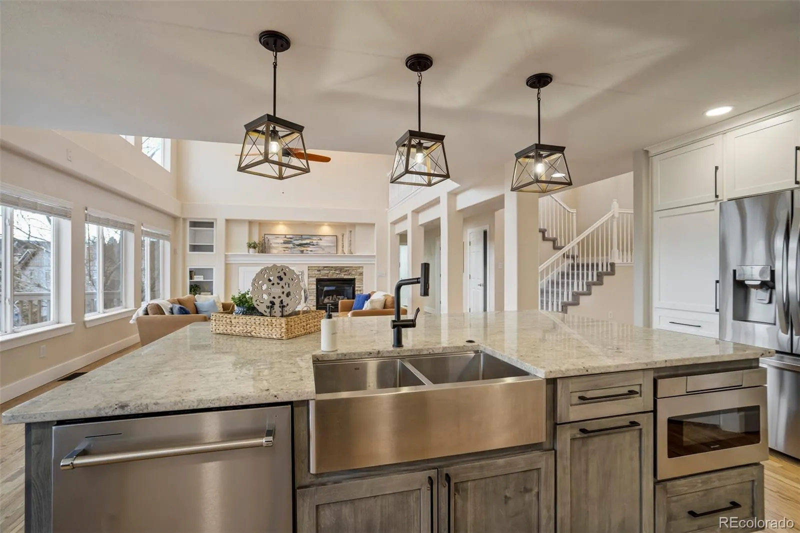 At the heart of the home is a stunning, brand-new modern farmhouse gourmet kitchen designed for both everyday living and entertaining. Highlights include a 6-burner dual-fuel smart oven, expansive 9-foot granite island, stainless steel appliances, beverage refrigerator, farmhouse sink, and smart faucet—blending style and function in a space that naturally becomes the gathering place.
