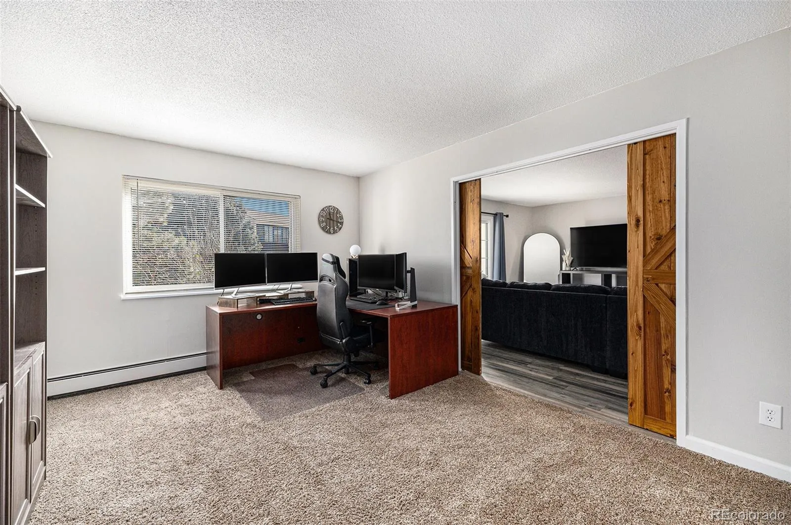 Cozy, updated spacious condo with quiet deck facing open area with wonderful trees that will soon be in bloom! All new flooring and paint. Updated kitchen with pantry opens into great room that has plenty of light. Updates include all new stainless steel appliances, new sink and countertops. Custom barn doors add character as do all new interior doors and hardware. Spacious primary has large walk-in closet with totally updated primary bath featuring a large shower with sliding doors. The second full bath is also totally updated with great vanity and mirror. HOA amenities feature indoor/outdoor pools, wonderful community room with fireplace, bar area and multiple pool tables, library and outdoor space for entertaining. Gym area has workout area, changing rooms and sauna. Secure underground parking with great lighting and elevator. Communal laundry is conveniently located on second floor with a smart laundry system that can be controlled by phone app to notify when wash is complete. Also has an additional storage closet!