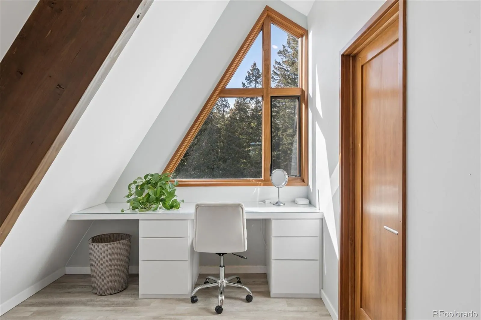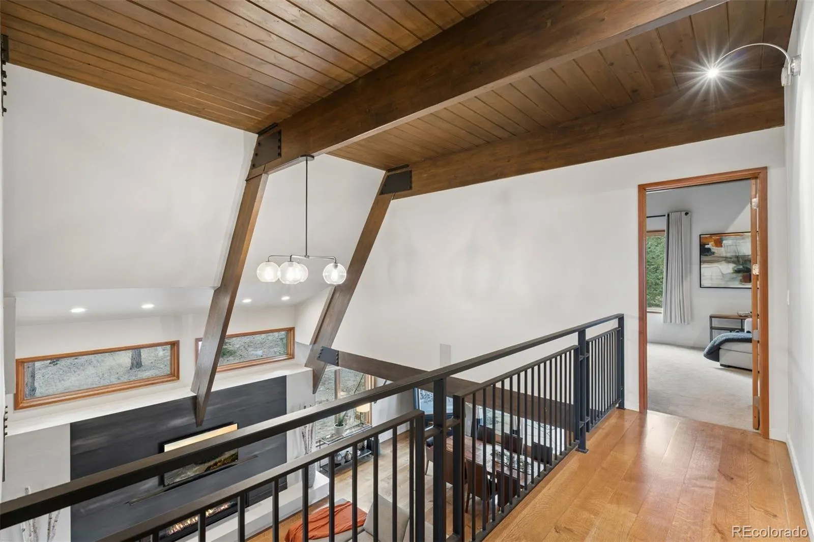 Framed by sweeping, snow-capped views of the Continental Divide, this 7,000 sqft mountain modern retreat blends timeless materials with refined rustic design on 5 gentle acres in Soda Creek. Wrapped in 100-year-old reclaimed barn wood and stone, the exterior is beautifully grounded in its mountain setting. Inside, soaring vaulted ceilings and rich wood beams define the dramatic great room, where a modern gas fireplace and walls of glass frame the serene outdoor landscapes. The renovated kitchen is a culinary showpiece with quartz counters and an exceptional appliance suite including an 8-burner Dacor range with double ovens, 2 Bosch dishwashers, SubZero wine cooler, and Miele coffee system. The adjacent dining room opens to a flagstone patio that wraps around to a covered, heated terrace with built-in gas grill and fireplace for seamless indoor-outdoor living – all connecting to a sought-after flat backyard with expansive mountain views. Five bedrooms and six baths provide flexibility. The upper-level primary suite offers a spa-inspired bath, soaking tub, dual shower heads, and expansive walk-in closet with integrated washer/dryer. A private guest suite has some of the best views on the property and features its own living room with kitchenette, bedroom with walk-in closet, 3/4 bath and big bonus room ideal for a gym or additional sleeping quarters. Designed for comfort and self-sufficiency, the home includes a metal roof, two owned solar systems, a backup generator, energy-efficient mini-splits, and two furnaces. A greenhouse/chicken coop with water service supports a sustainable lifestyle. Additional highlights include a library nook with barn doors, main-level office and laundry, lower-level family room, mudroom with cubbies, and a heated six-car garage. A rare fusion of craftsmanship and commanding mountain views — this home is Colorado living at its most inspired * 3 miles to I70 and ~1 mile to Bergen Park Shopping Center, Buchanan Rec Center and local schools.