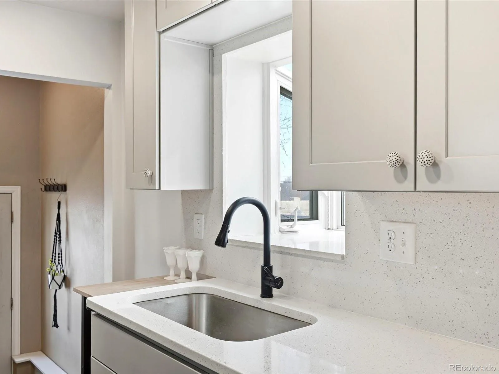 Move-in ready charm in an unbeatable location – just minutes to Sloan’s Lake, Highlands Square, and all the best Edgewater amenities. This 1946 beauty effortlessly blends timeless character with thoughtful updates and flexible living space inside and out. The covered front porch sets a warm, welcoming tone and becomes a true extension of your living space – perfect for slow mornings, evening wine, or catching up with neighbors as the sun sets. Inside, you’ll find a spacious living room with high ceilings, charming archways, original hardwood floors, classic built-ins, and incredible natural light throughout. The cozy dining area flows seamlessly into the freshly remodeled kitchen featuring quartz counters and backsplash, stainless steel appliances, gas stove, picture window above the sink, durable Marmoleum floors, and updated light fixtures. Two main-level bedrooms offer generous closets, including a primary with double closets, plus a full bathroom. Downstairs, the finished basement nearly doubles your living space with a massive third non-conforming bedroom, updated 3/4 bath, laundry area with utility sink, and a large storage and utility room. Out back is where this home truly shines: an expansive freshly painted deck, hot tub, built-in fire pit, established garden area, storage shed, and a fully fenced private yard designed for year-round Colorado living. The detached studio includes electricity, insulation, heat AND cooling – ideal for a home office, gym, art studio, or hobby space. An attached one-car garage plus significant off-street driveway parking adds everyday convenience. The property is also zoned for an ADU (Buyer to verify). Character. Flexibility. Location. This one has it all.
